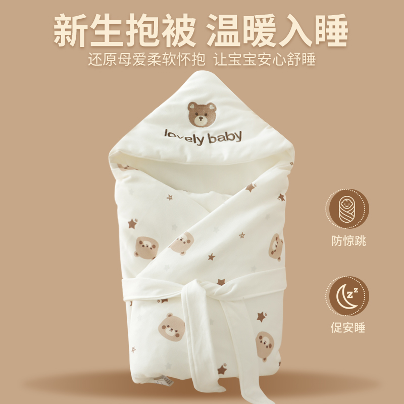 德国婴儿纯棉秋冬厚款包被新生儿防惊吓包单襁褓四季通用宝宝抱被