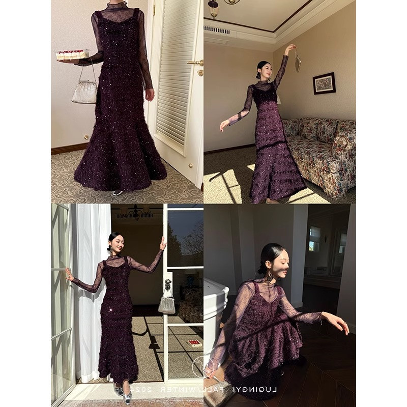 鹭青原创【荆棘吻】鱼尾连衣裙女重工定制流苏复古气质吊带长裙一