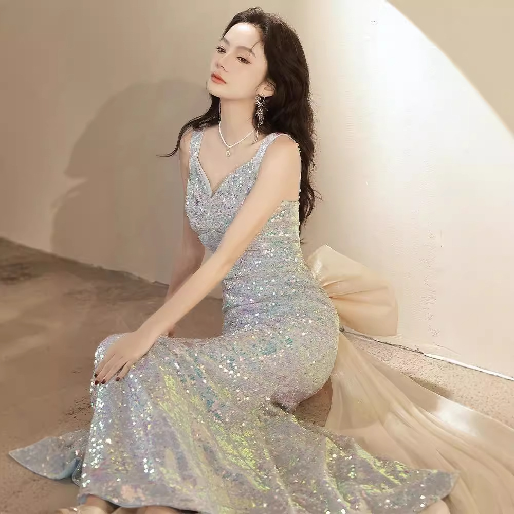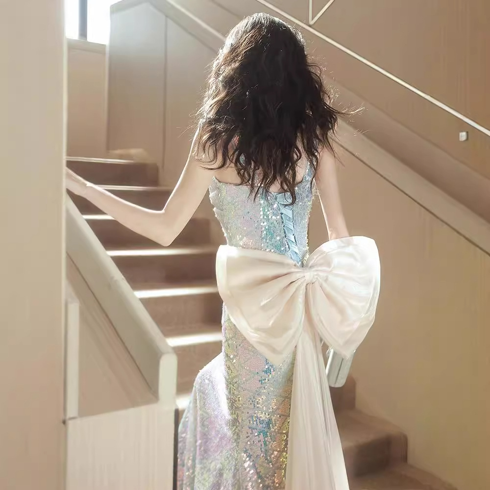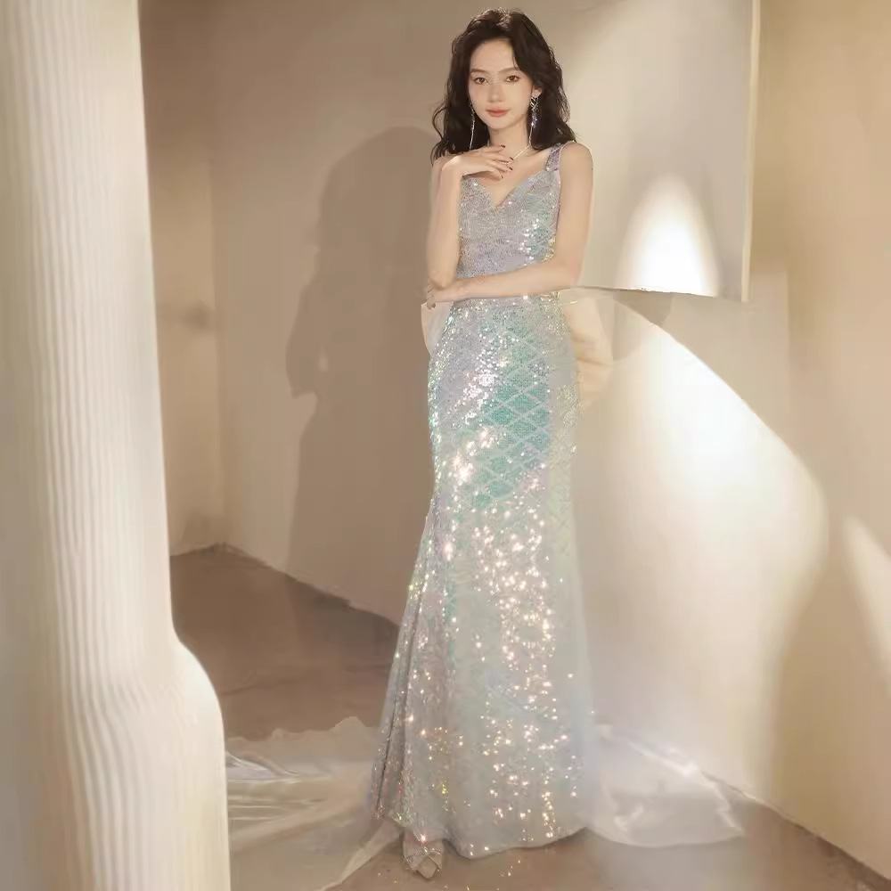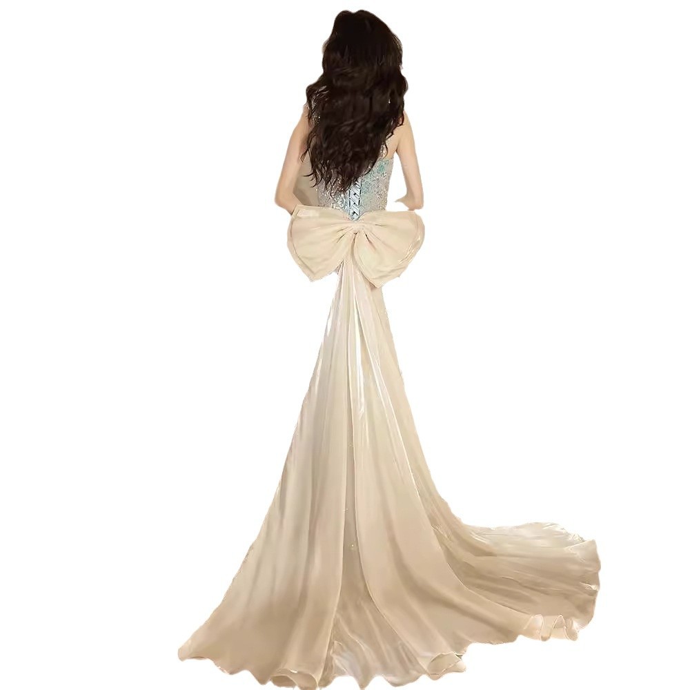人鱼姬新娘敬酒服高级吊带鱼尾订婚结婚主持年会晚礼服裙2025