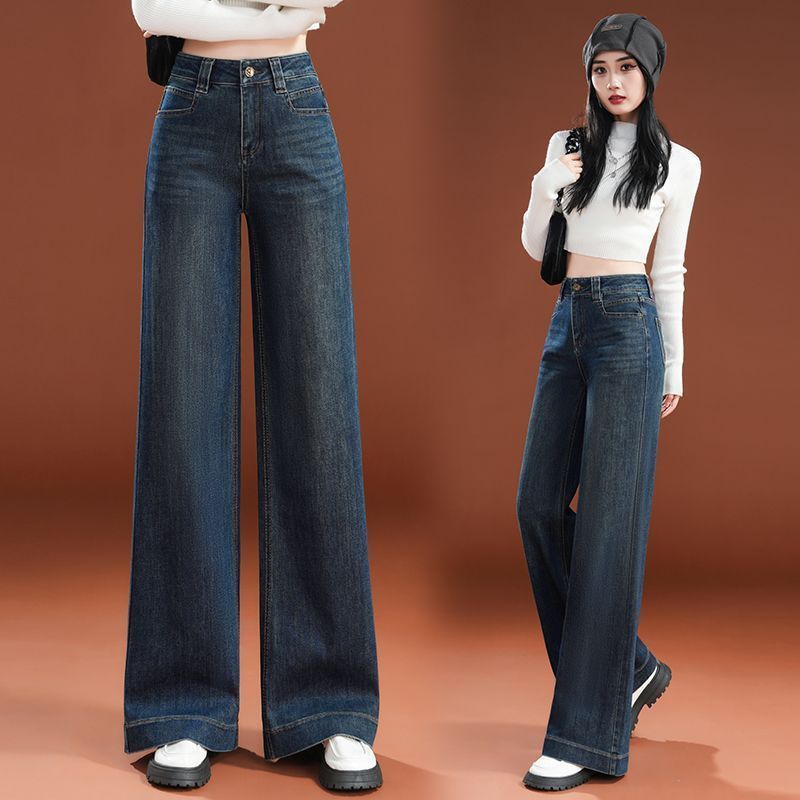 复古阔腿牛仔裤女2025春秋款高腰显瘦宽松垂感加绒加厚直筒拖地裤