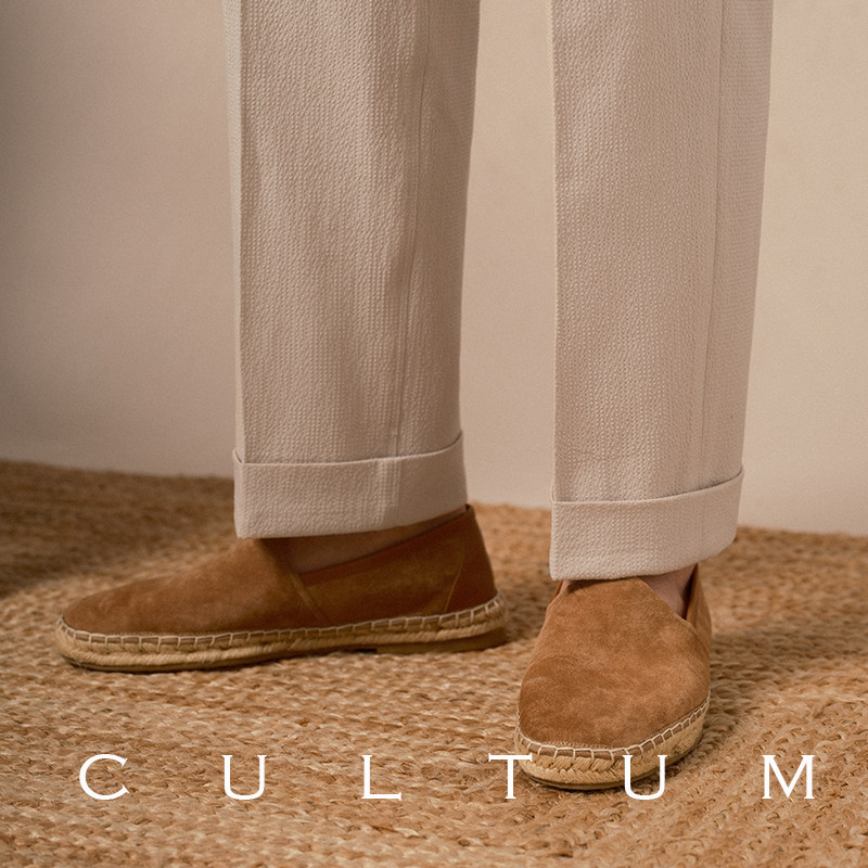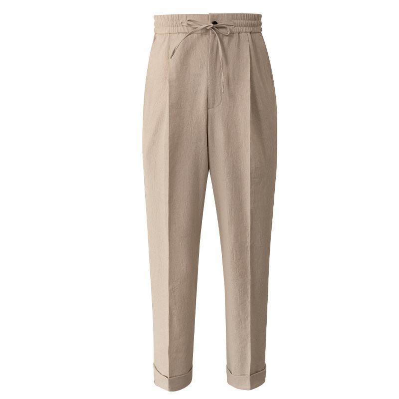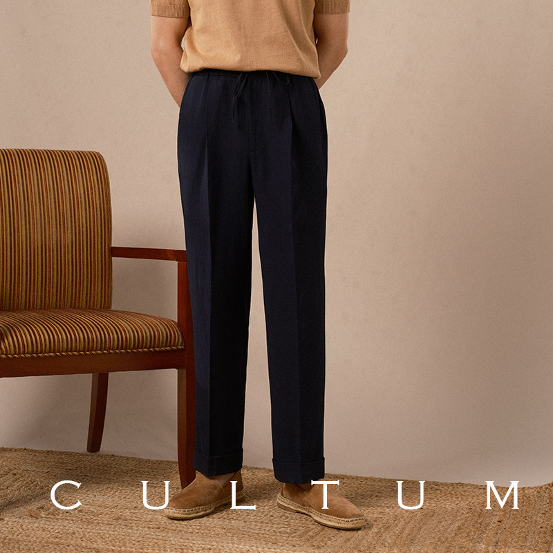 CULTUM NAPOLI 春夏轻薄透气泡泡纱单褶免烫抽绳西裤男士休闲长裤