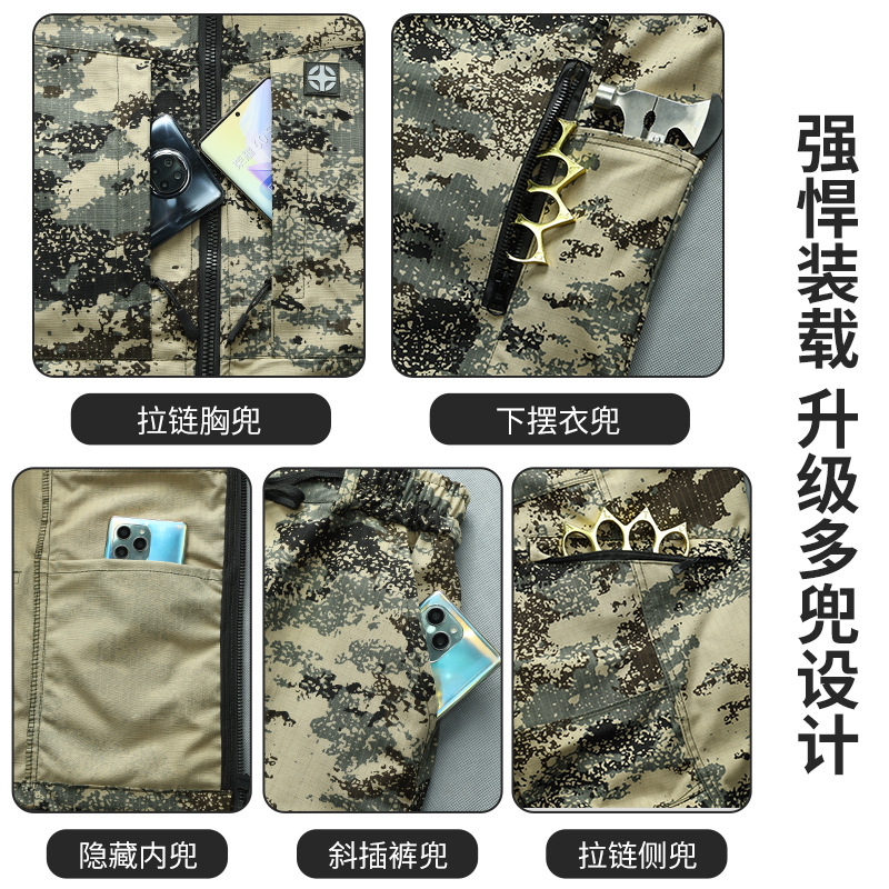迷彩服套装男款休闲服春秋网格弹力耐磨耐脏户外劳保服加档工作服