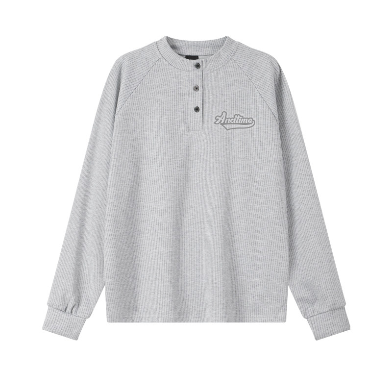 ANDTIME春季重磅亨利领T恤美式健身条纹肌理运动衫棉感卫衣长袖潮