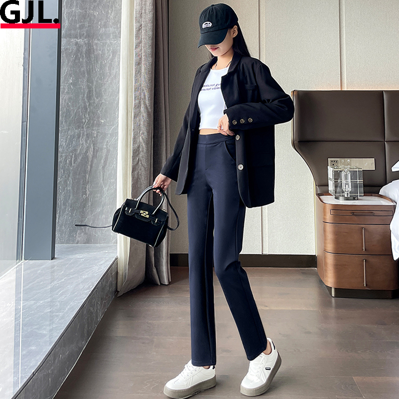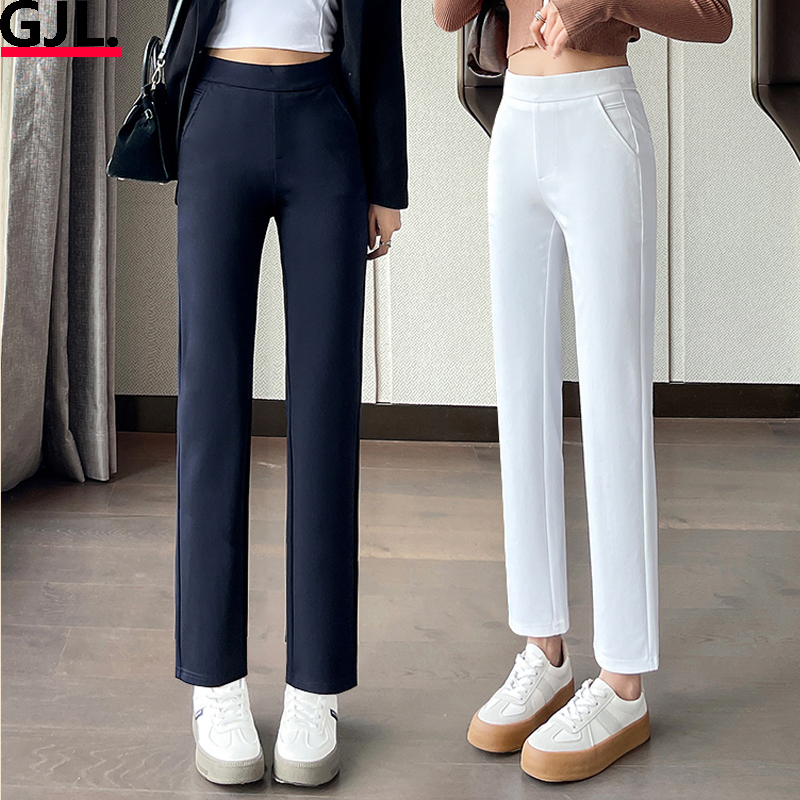高腰弹力直筒裤女小个子2025春秋新款修身显瘦九分裤垂感百搭女裤