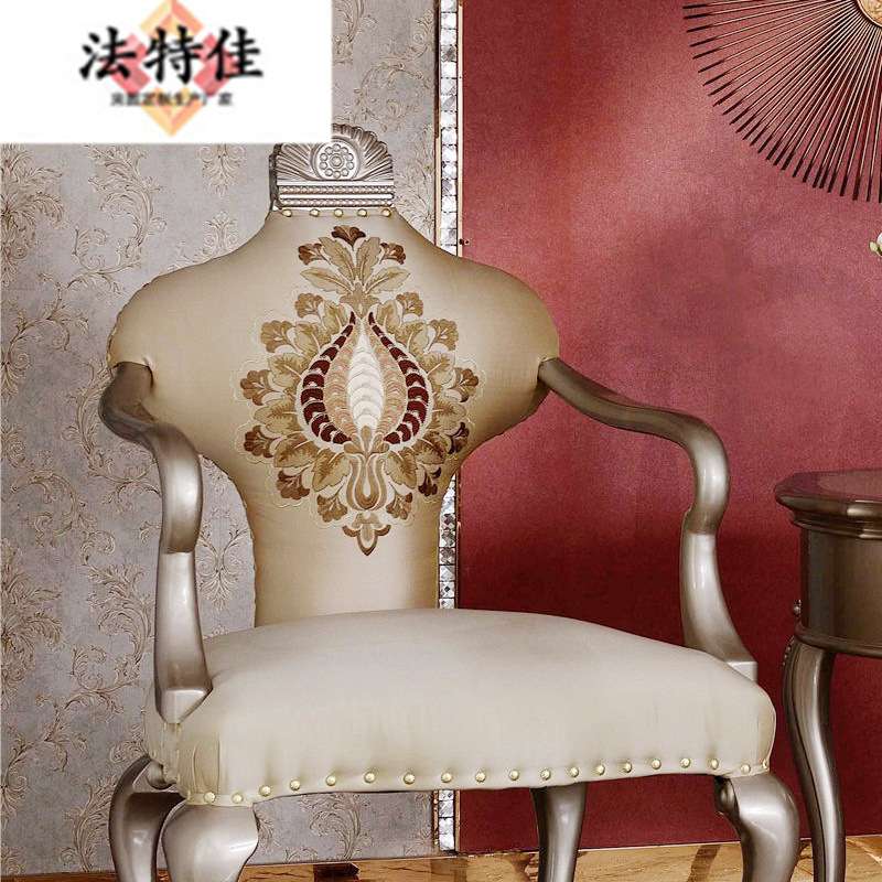 新古典休闲椅欧式实木雕花单人沙发椅卧室小圆几法式角几