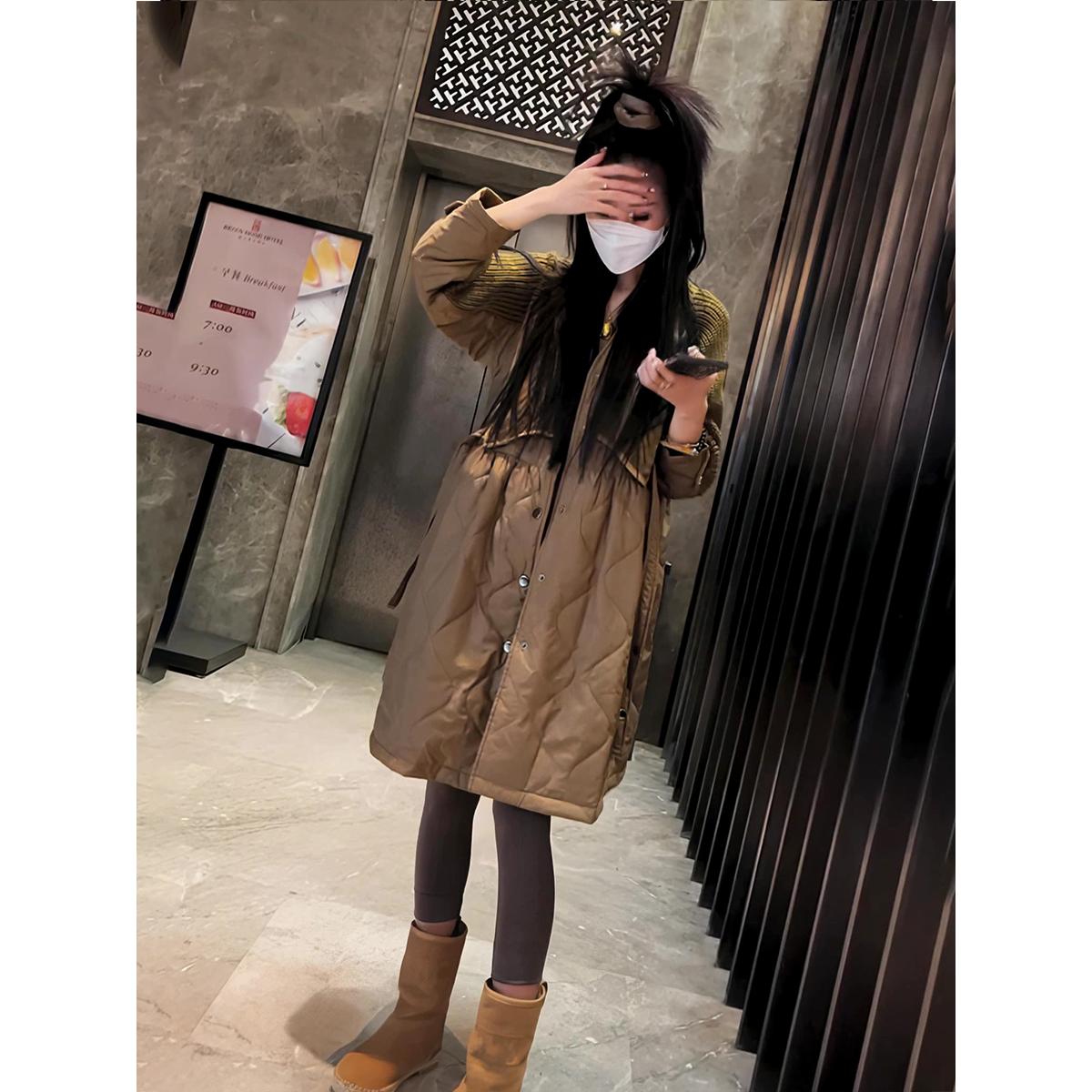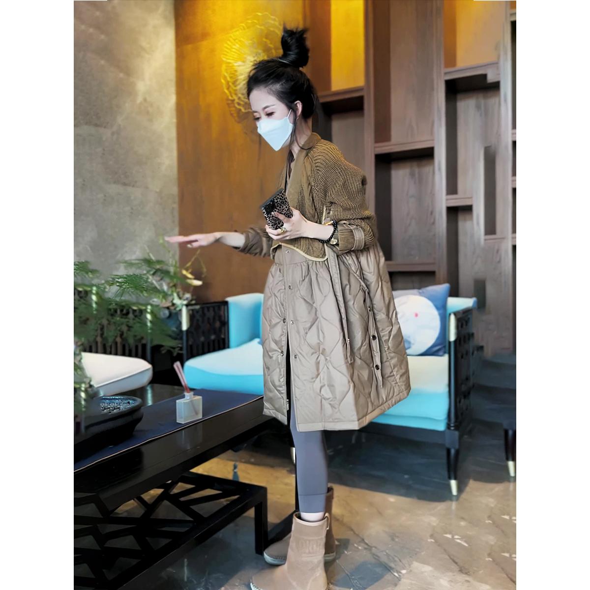 欧洲站轻奢风设计款毛衣拼接羽绒棉服女冬2025新款长款外套