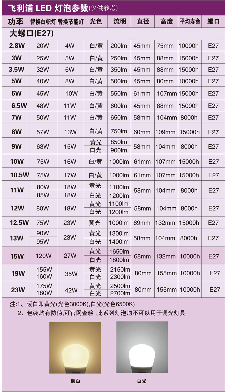 飞利浦led灯泡e27螺口节能球泡3w10w11w12w13w15w19w23w5w6.5w9瓦