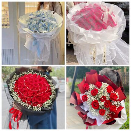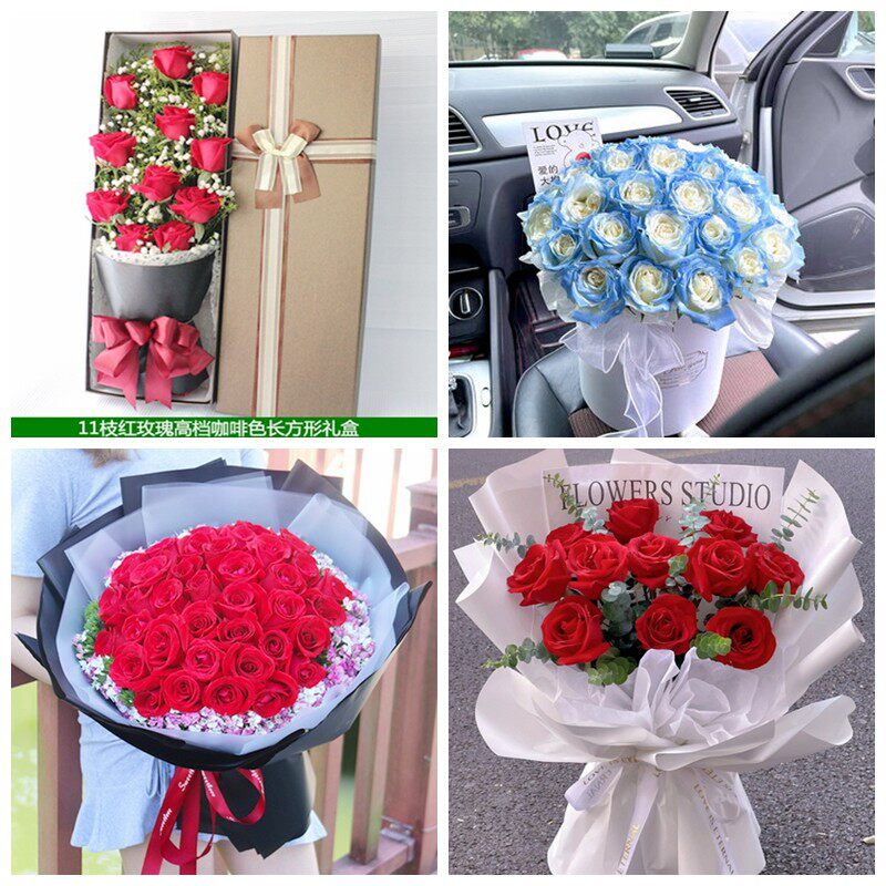 黔东南州黎平县岑巩丹寨县女神节碎冰蓝红玫瑰花束同城鲜花店表白