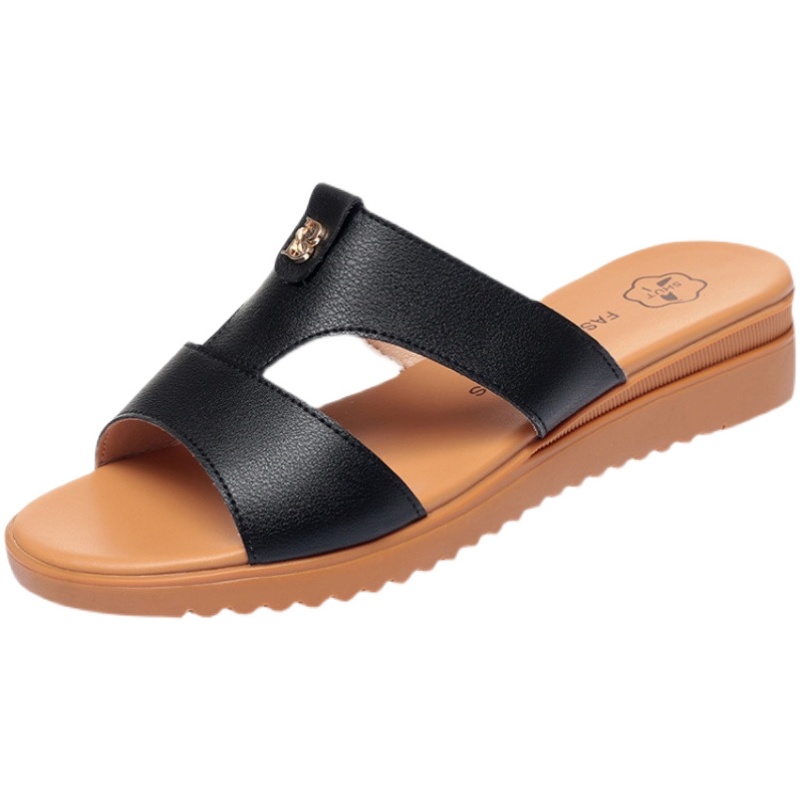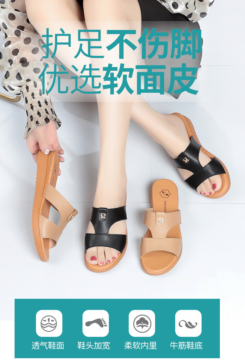 真皮平底韩版防滑中年孕妇凉拖鞋