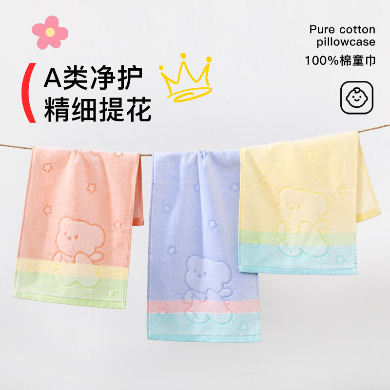 洁玉儿童毛巾A类标准新疆棉宝宝洗脸小毛巾卡通提花割绒柔软吸水