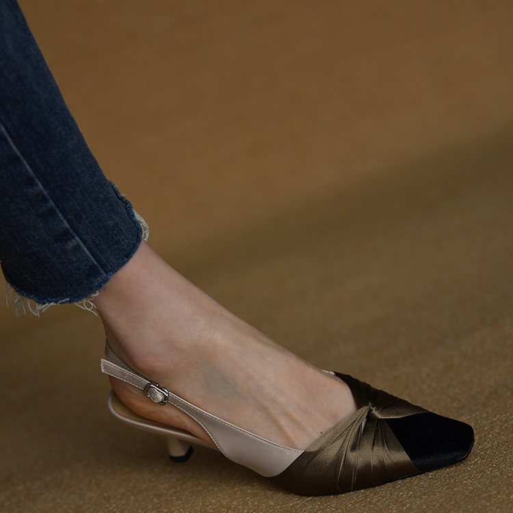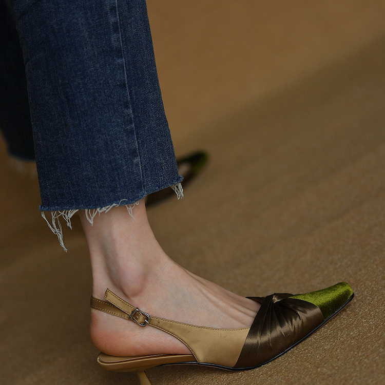 皮厚先生 法式拼色小细跟方头女鞋 2025早春后空包头凉鞋女中跟