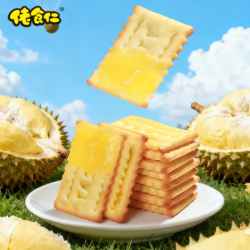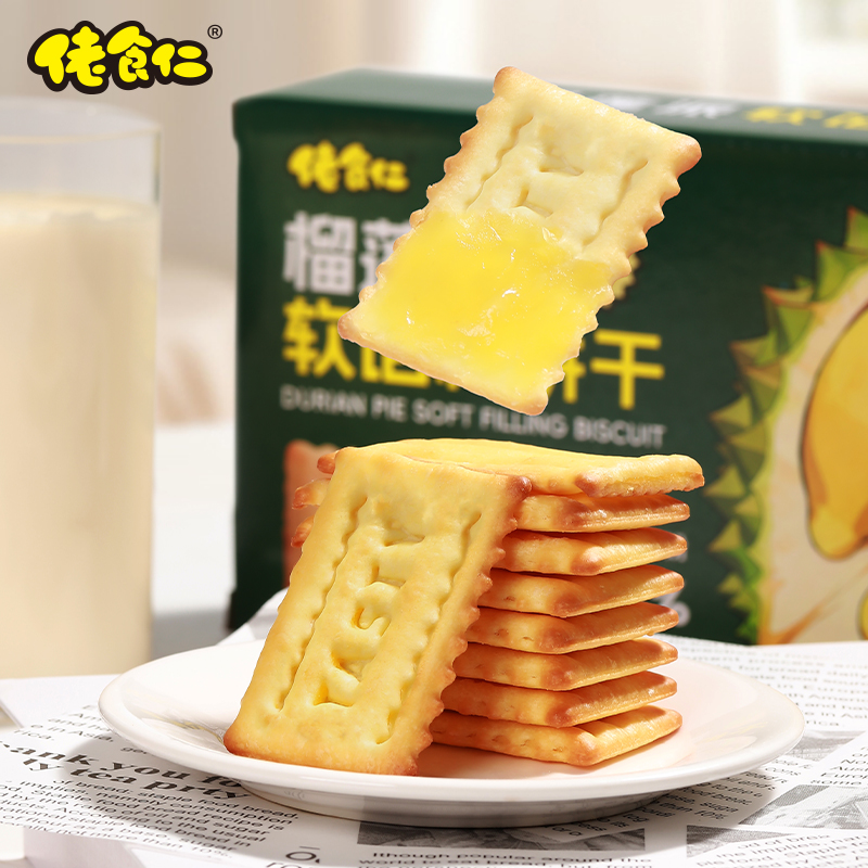 佬食仁榴莲派软心饼干酥脆水果夹心饼休闲解馋办公室网红零食190g