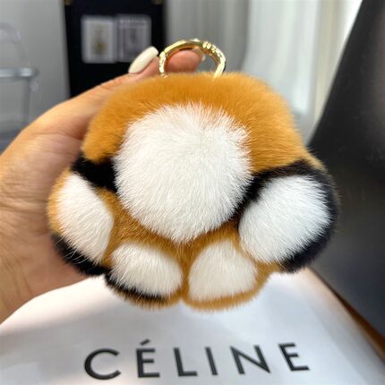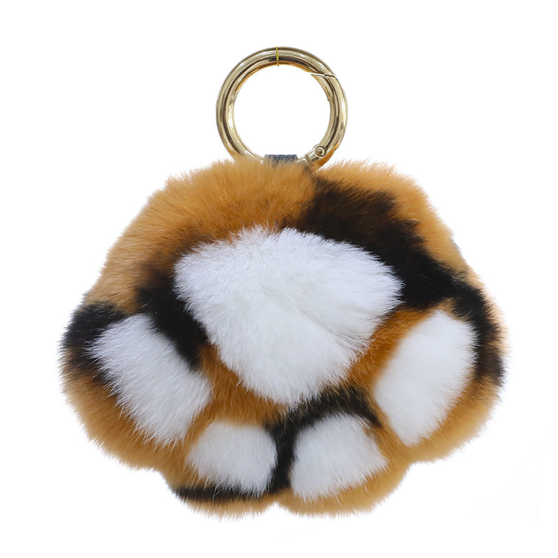 真獭兔毛豹纹小猫爪汽车钥匙扣挂件可爱毛绒球书包包挂饰生日礼物