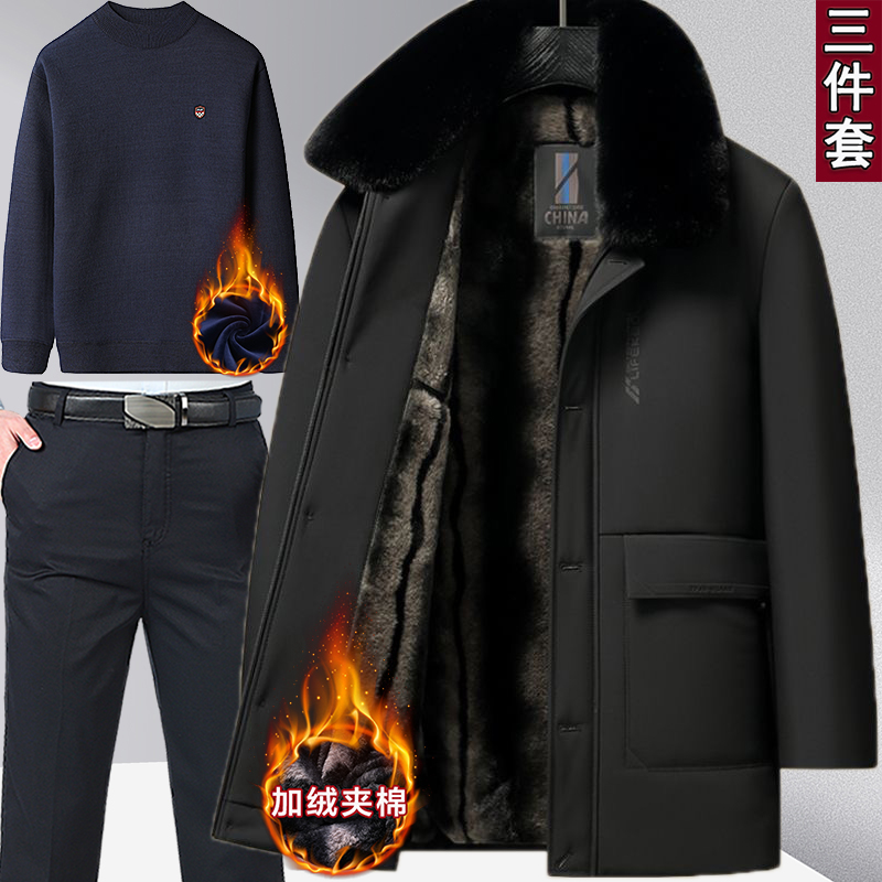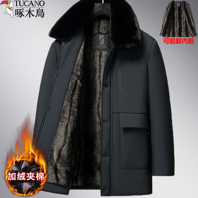 啄木鸟中年男士外套加绒加厚款爸爸装冬季棉袄防寒服中老年人棉衣