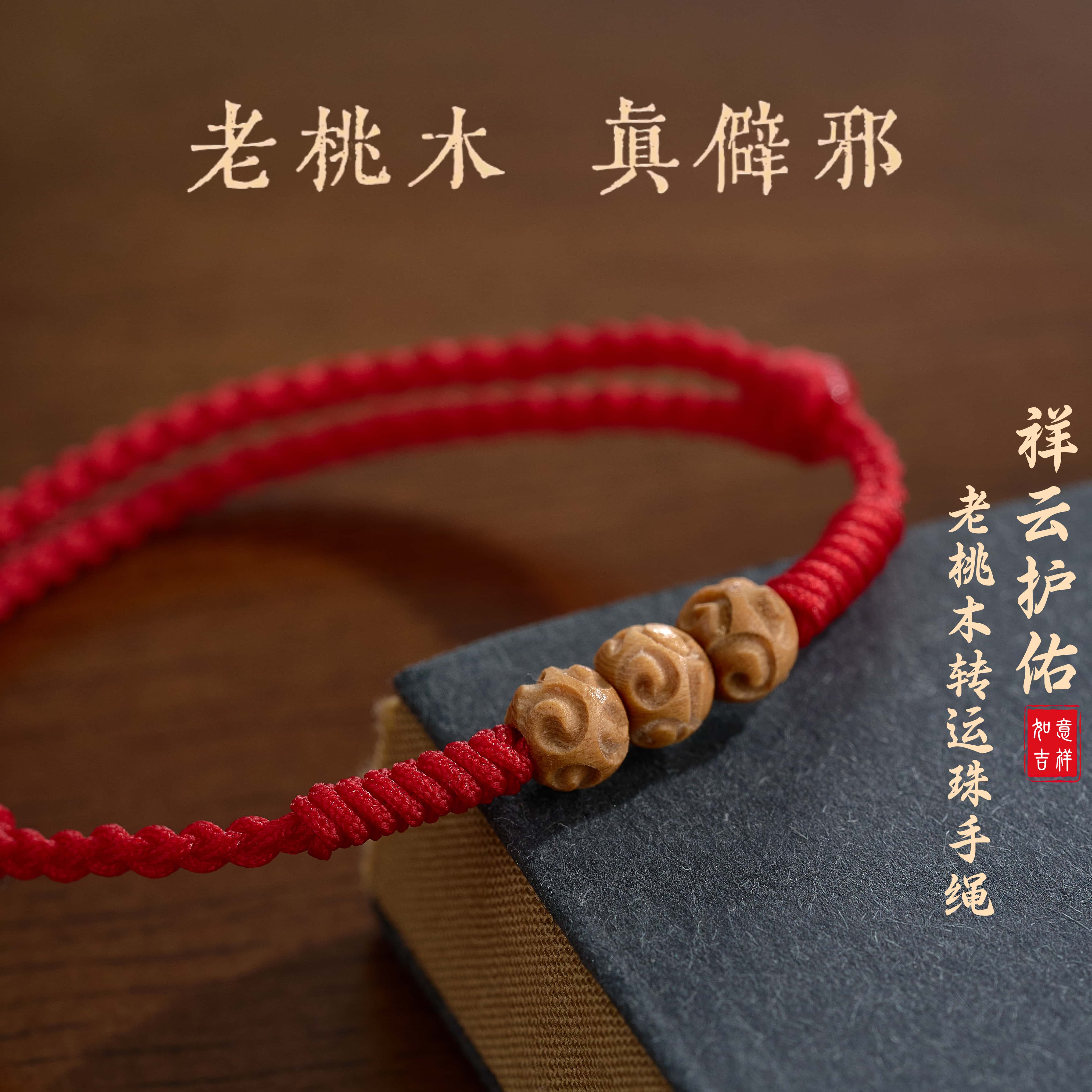 天然桃木祥云红绳手链男女本命年转运珠脚链儿童防惊吓护身符手绳