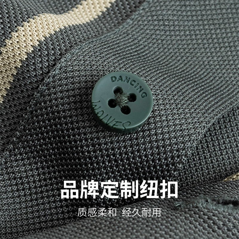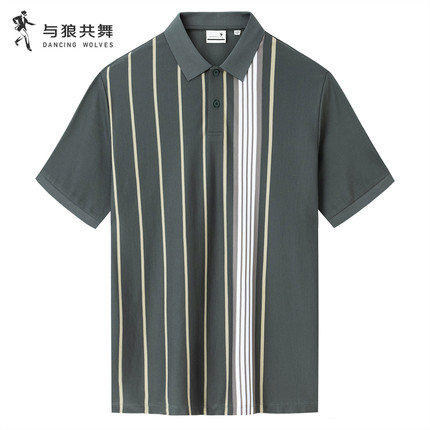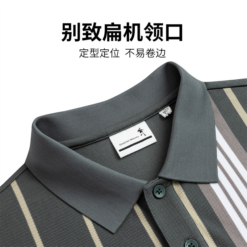 【商场款】与狼共舞翻领短袖T恤男2025夏款竖条纹顺滑透气polo衫