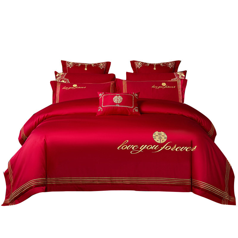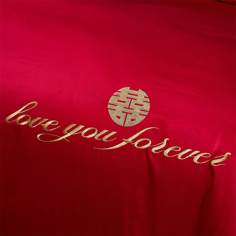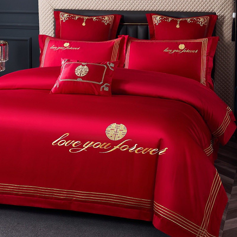 纯棉婚庆四件套 大红色结婚新婚床单被套婚房床上用品多件套