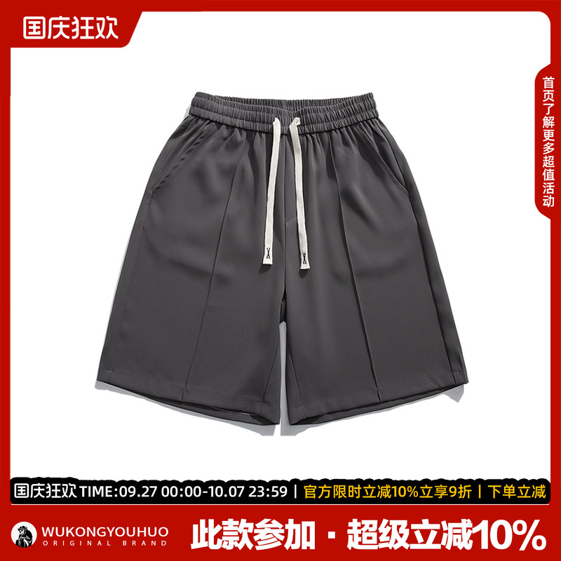 悟空有货夏季街头纯色冰丝运动五分裤男潮牌宽松百搭休闲西装短裤