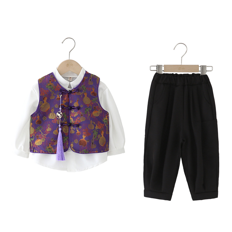 中国风男童汉服春季套装宝宝新中式儿童唐装马甲2025秋款男孩古风