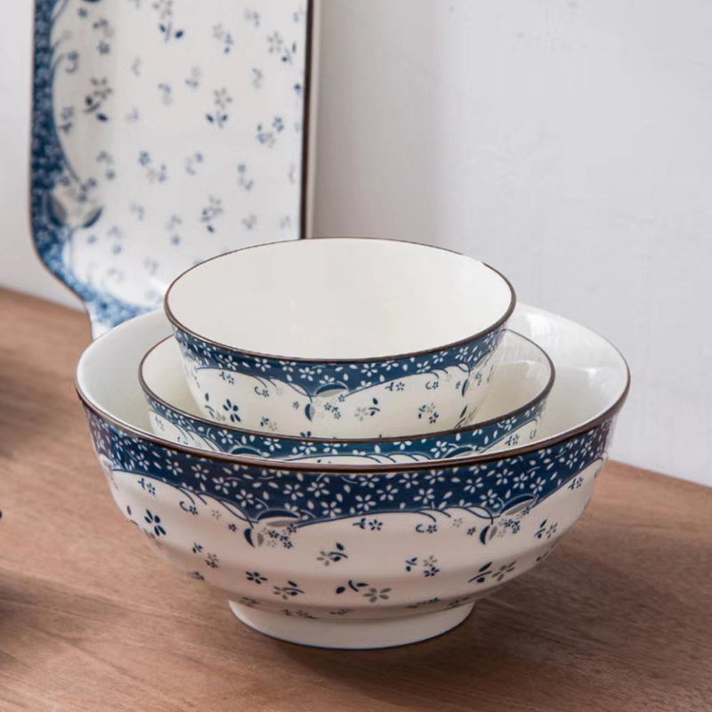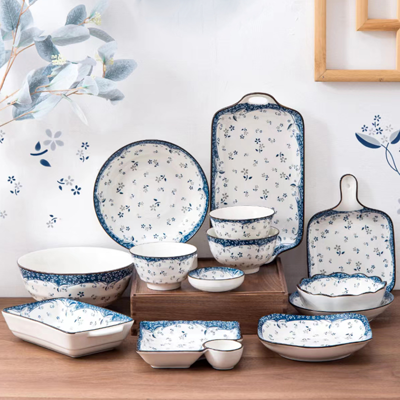 轻奢青花瓷碗碟套装家用乔迁餐具过年高颜值碗盘组合陶瓷饭碗菜盘