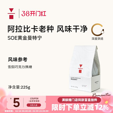 代数学家SOE黄金曼特宁意式手冲阿拉比卡精品咖啡豆225g可磨粉
