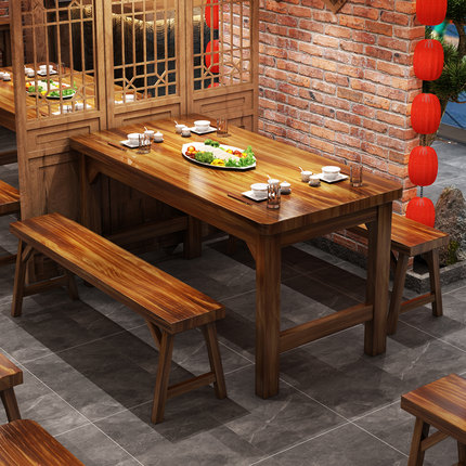 实木碳化快餐桌椅组合小吃店餐桌快餐面馆饭店食堂烧烤火锅4人