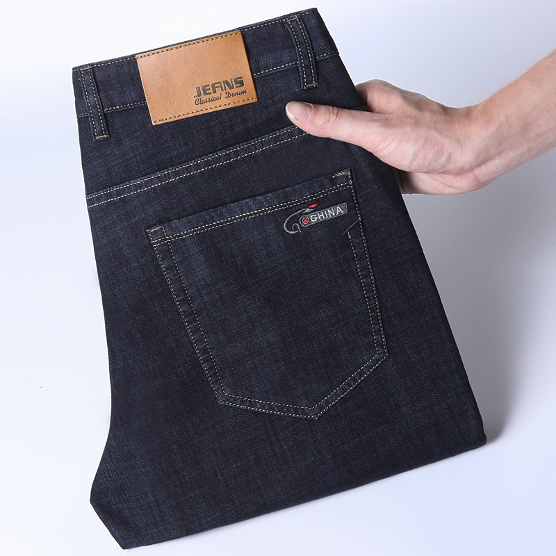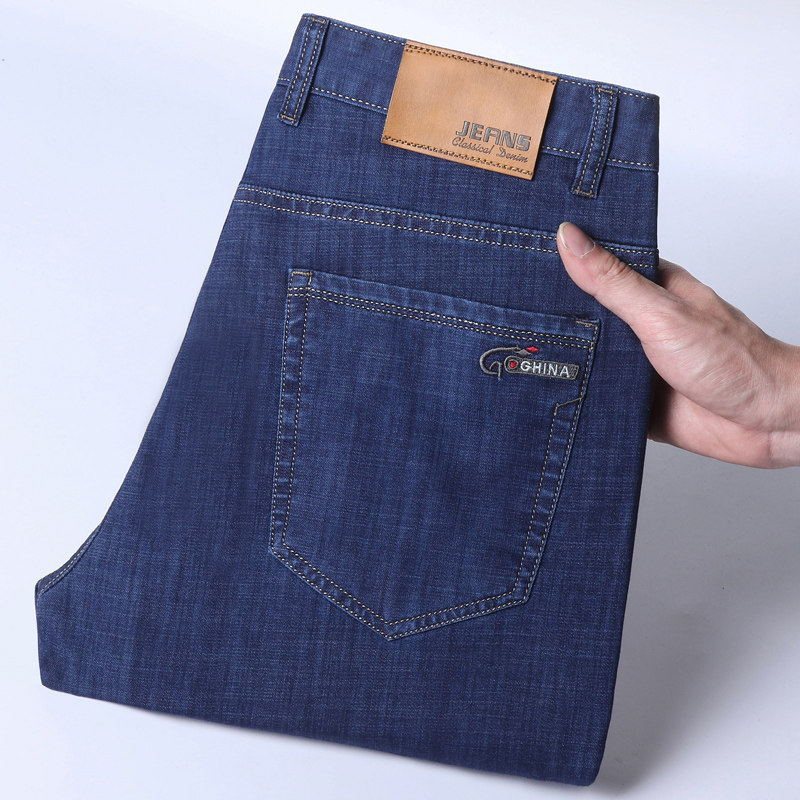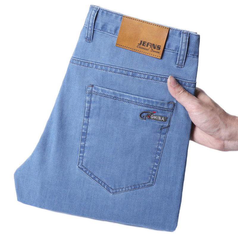 冰丝牛仔裤男弹力宽松直筒夏季超薄款中年商务浅色天丝休闲长裤子