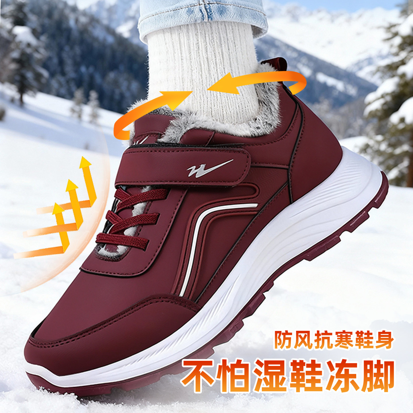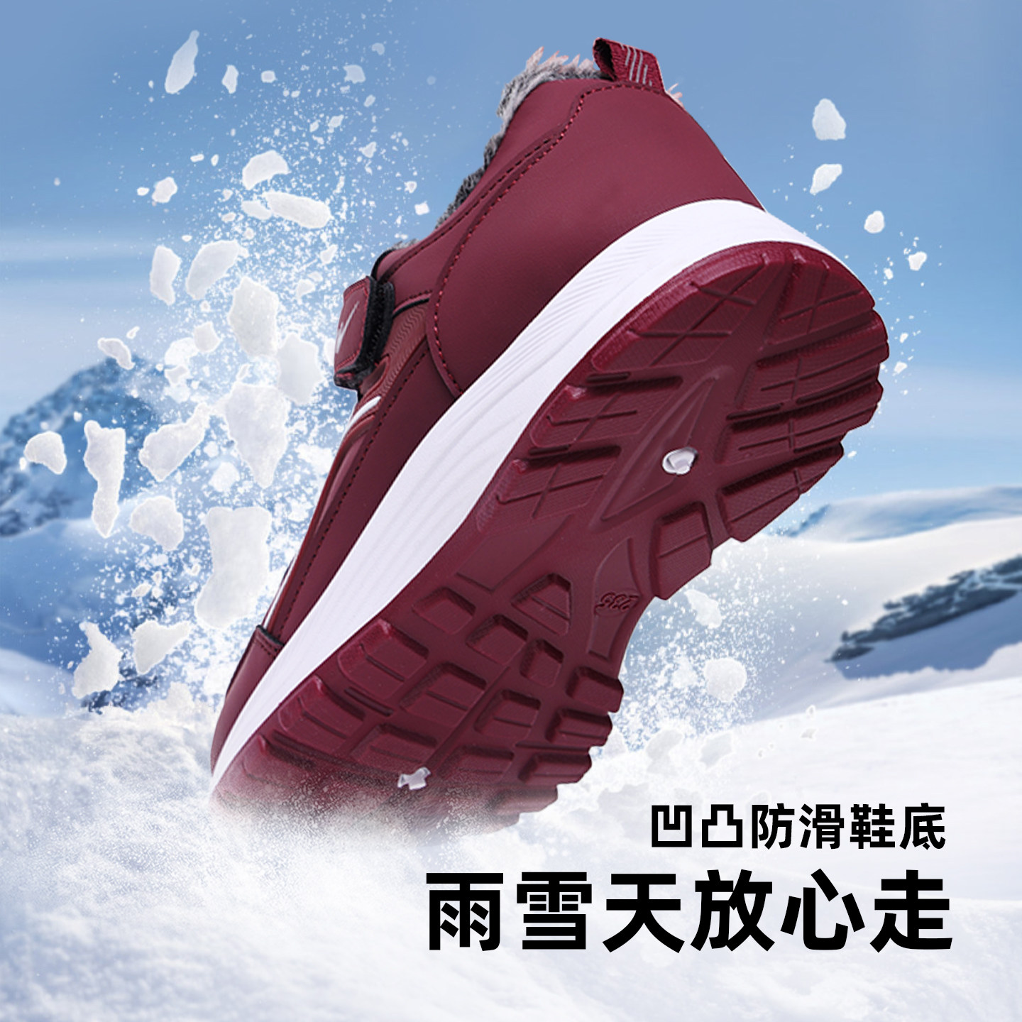 双星八特冬季新款软底舒适魔术贴健步鞋中老年防滑老人鞋男女同款