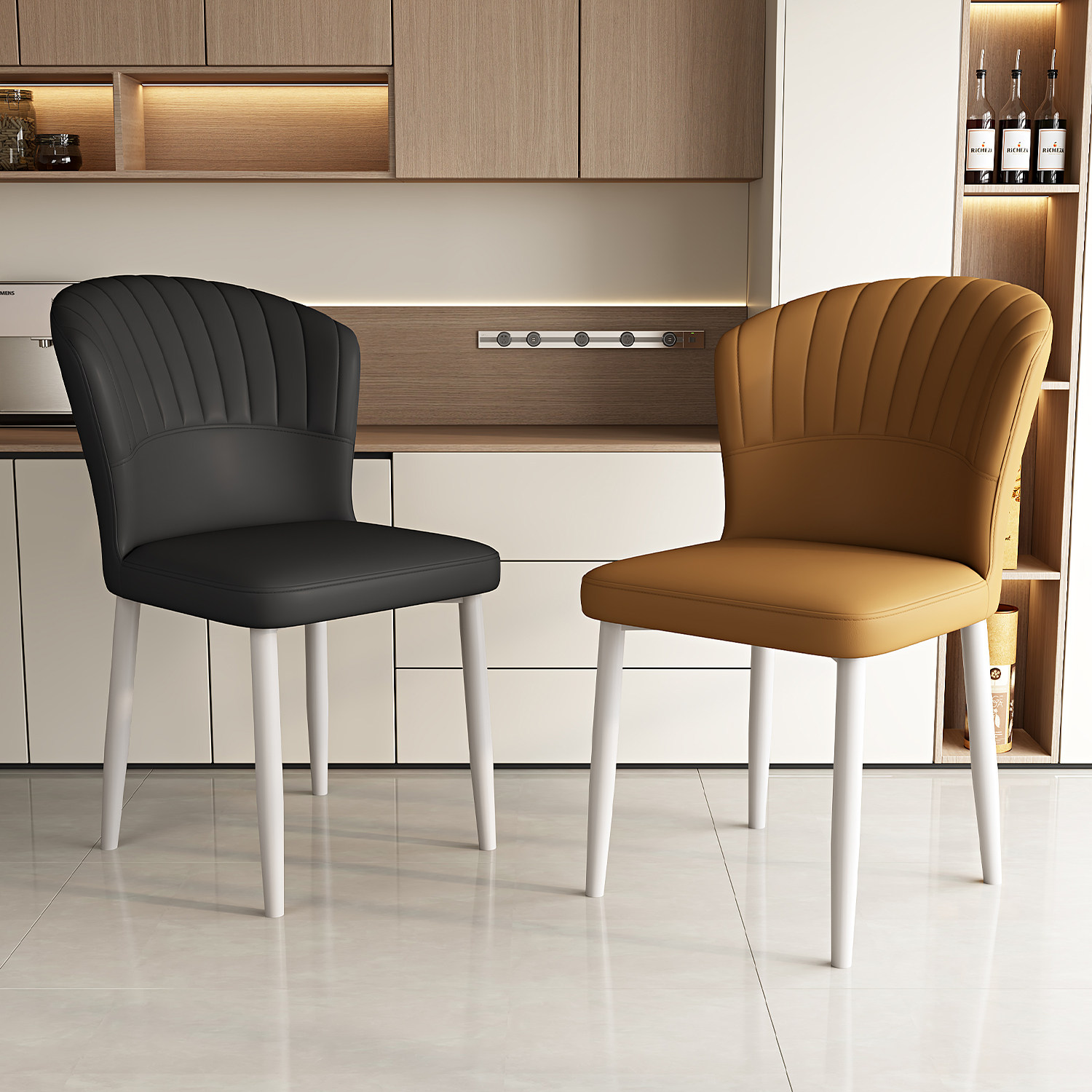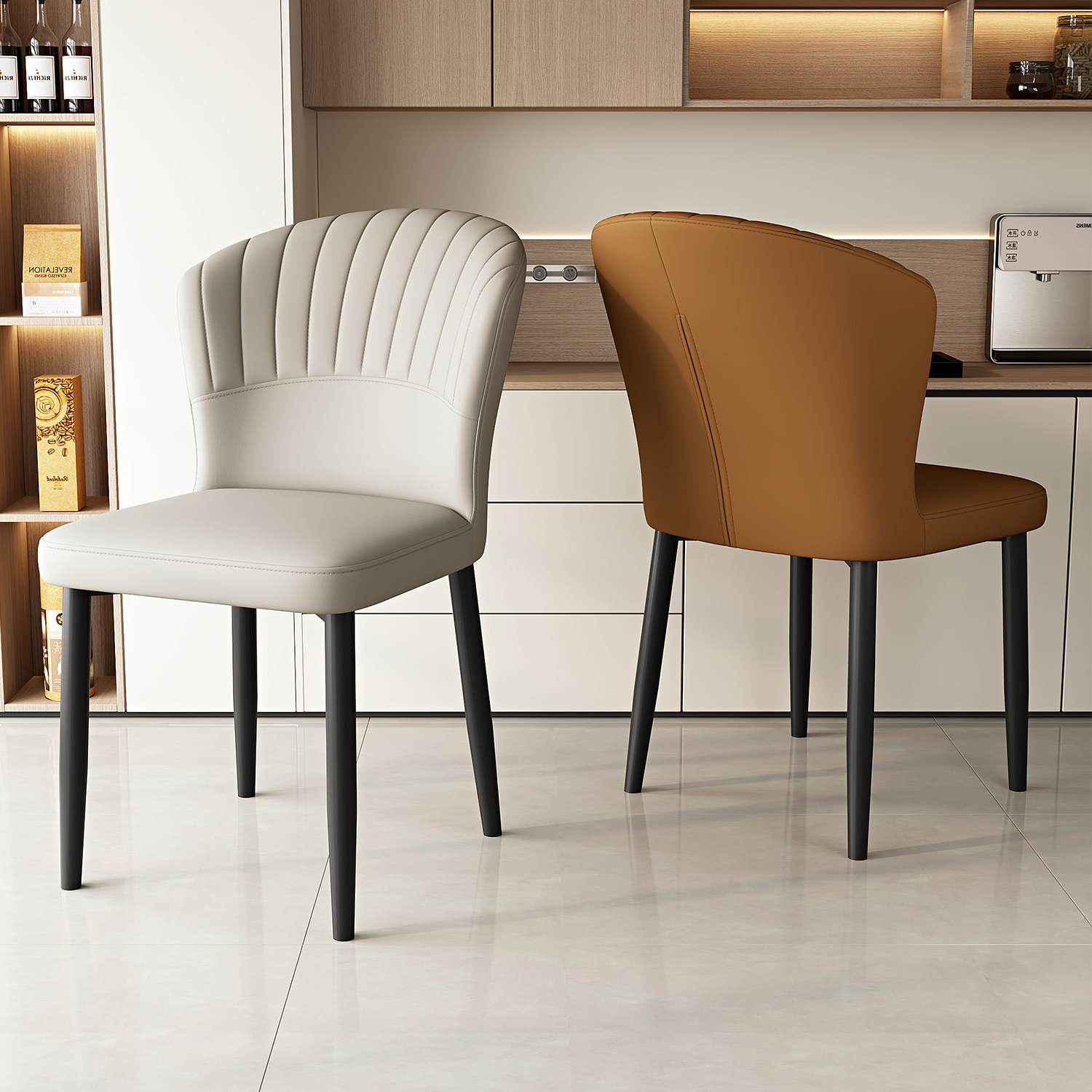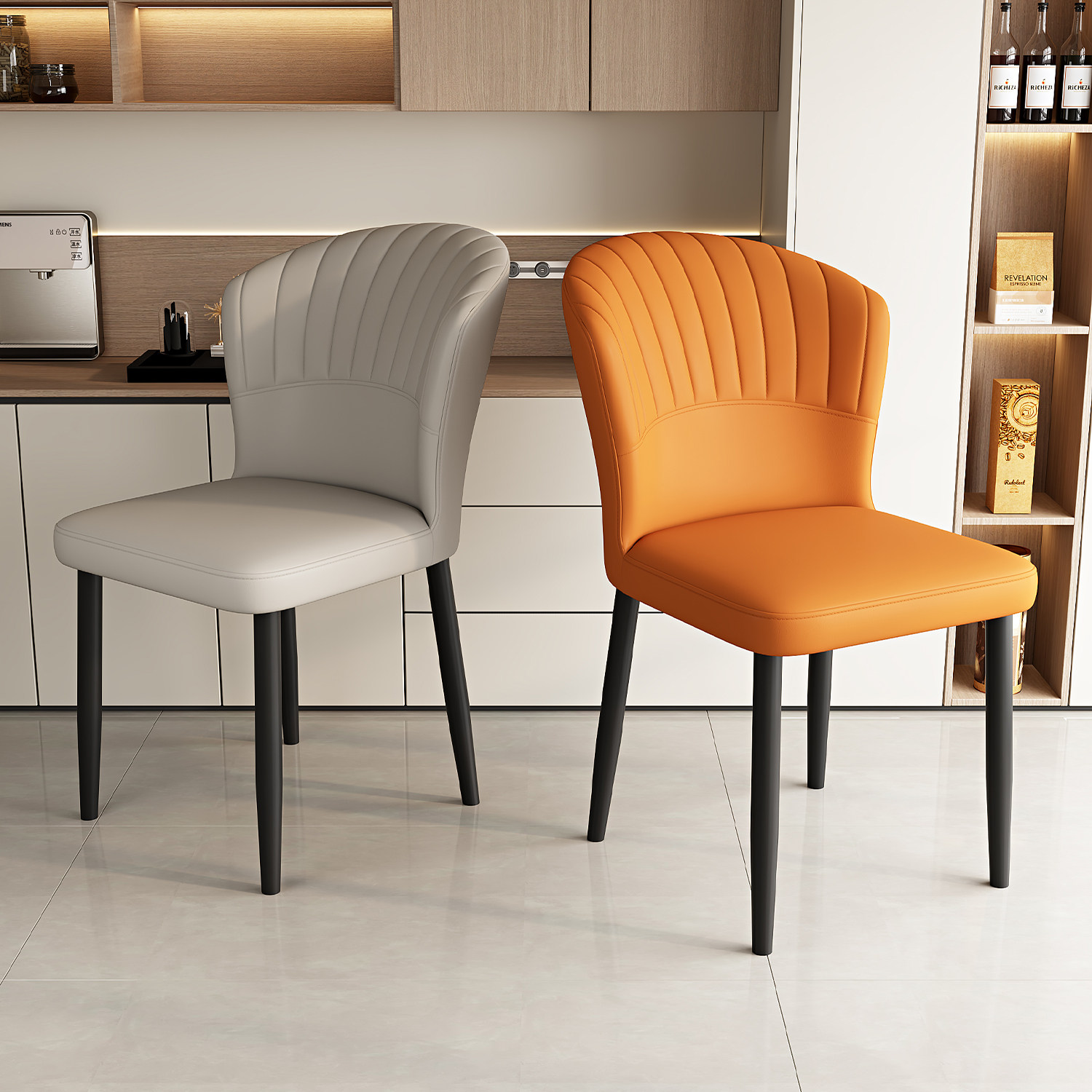 麓波奈碳钢皮革北欧轻奢餐椅薄利