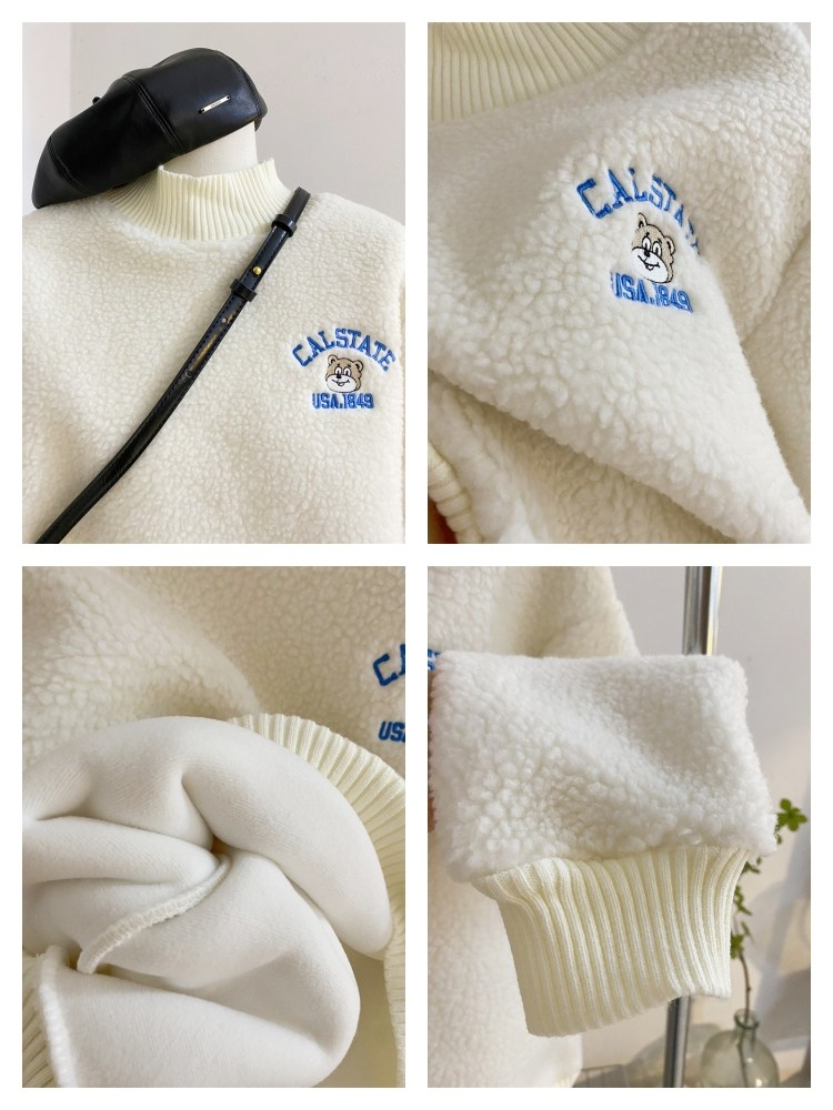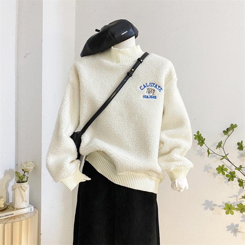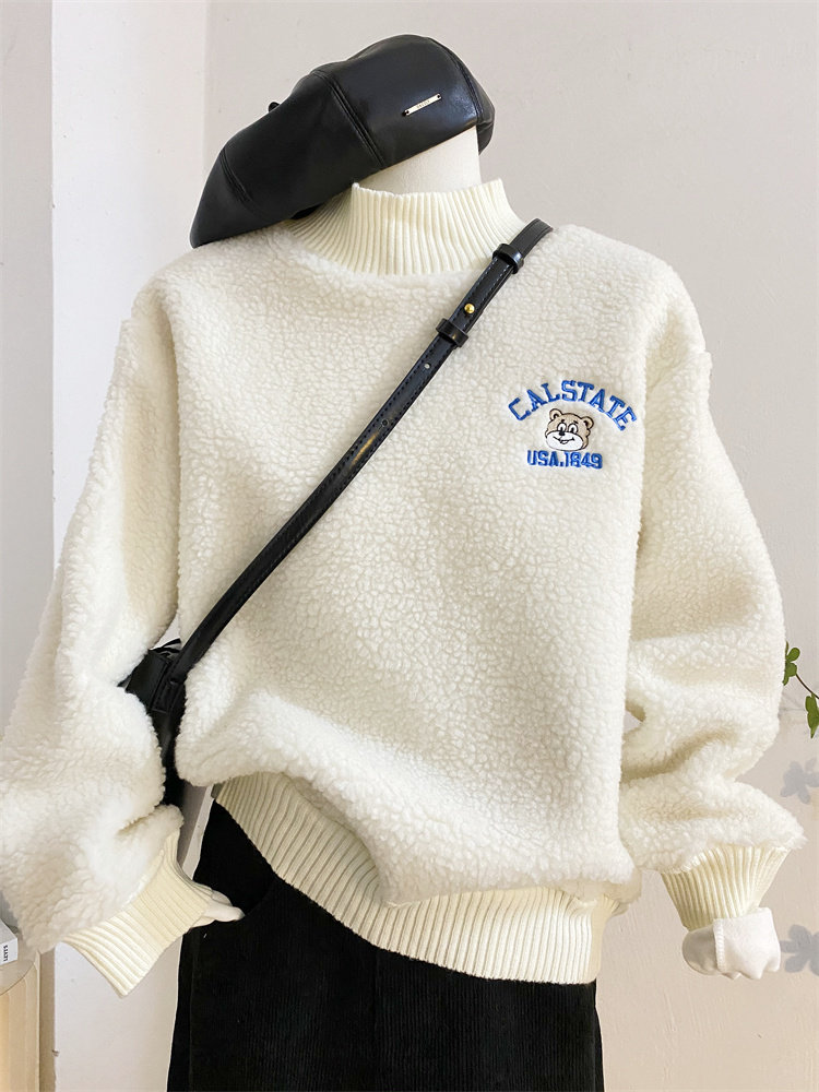 加绒加厚羊羔毛卫衣女秋冬季宽松学生百搭半高领套头绒衫外套上衣