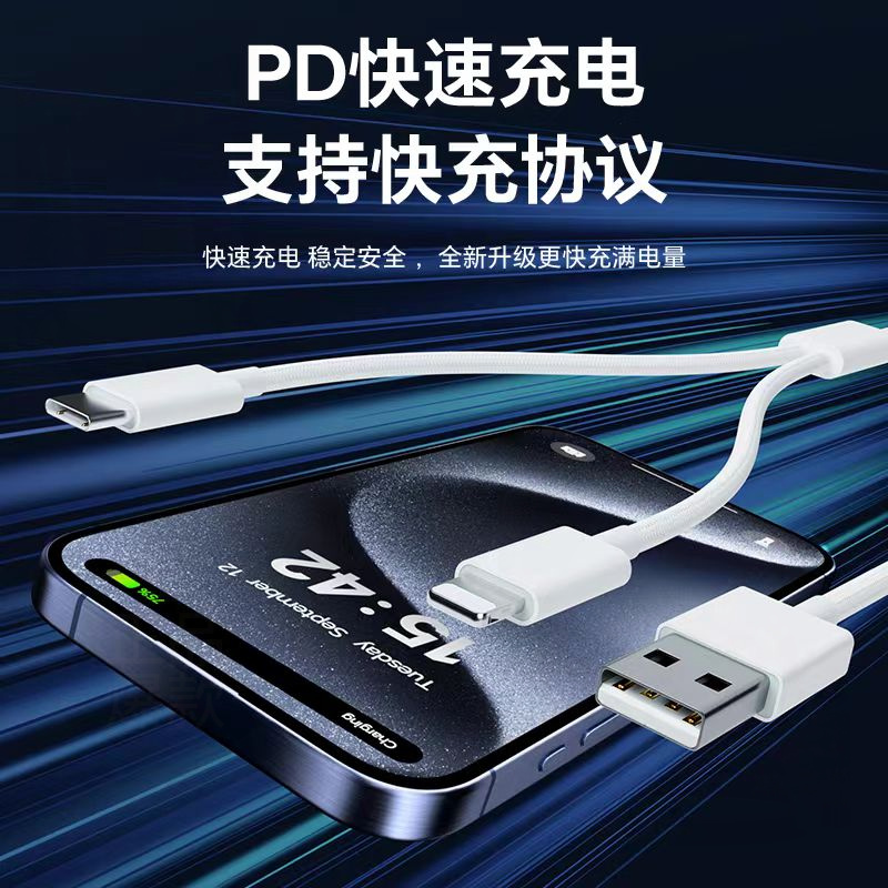 适用苹果8-17车载编织USB一拖二快充数据线iPhone8-16carplay专用适用平板iPad苹果15-17promax华为小米手机