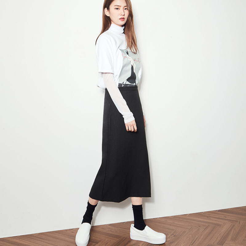 春夏黑色罗马布直筒包臀前开叉中长款半身小黑裙开衩修身铅笔裙女