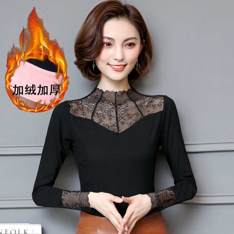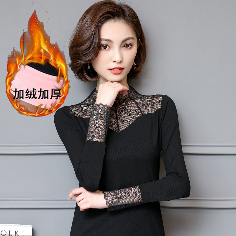 秋冬加绒莫代尔加厚蕾丝打底衫
