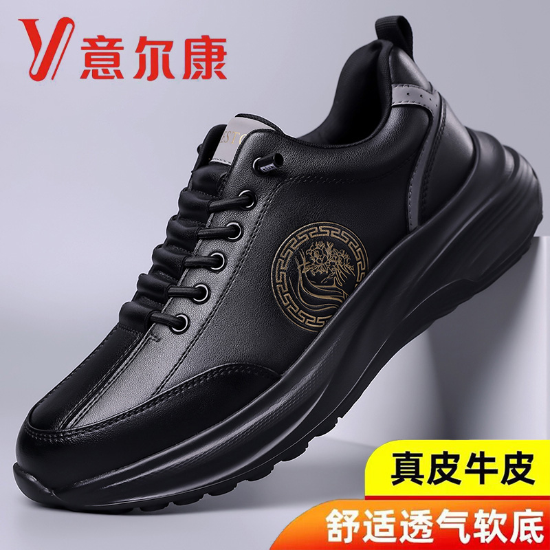 意尔康男鞋2025新款秋季潮运动小白鞋男士真皮透气休闲皮鞋内增高