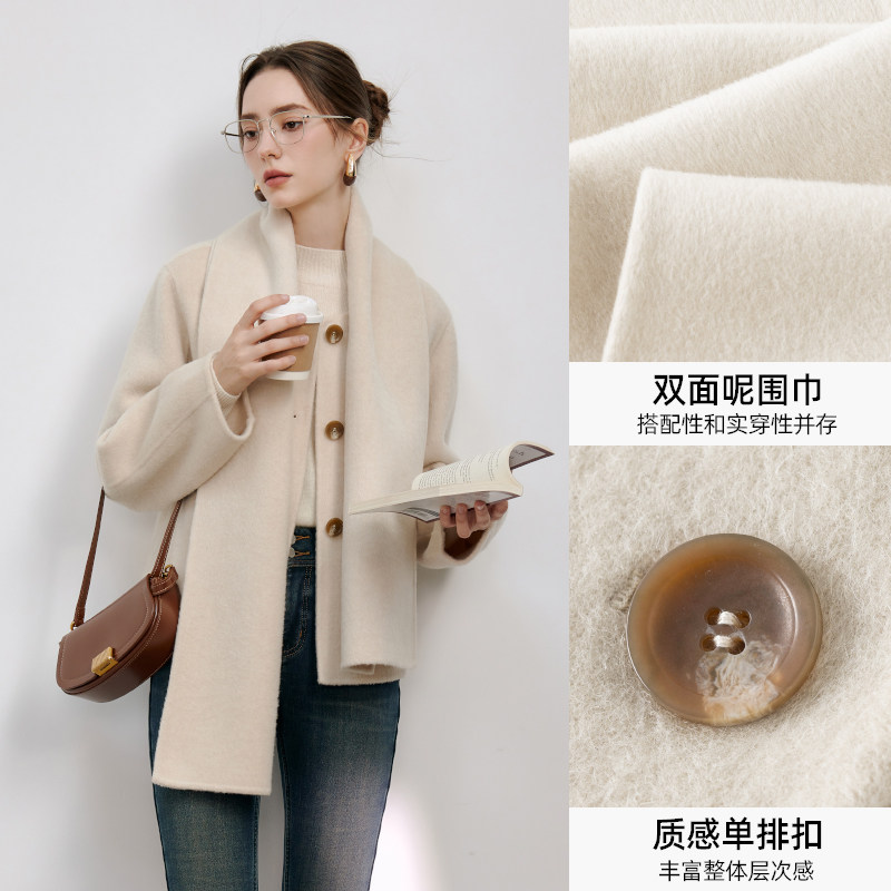 KBNE毛呢外套长袖风衣2025新款长款大衣防静电双面呢外套春秋冬女
