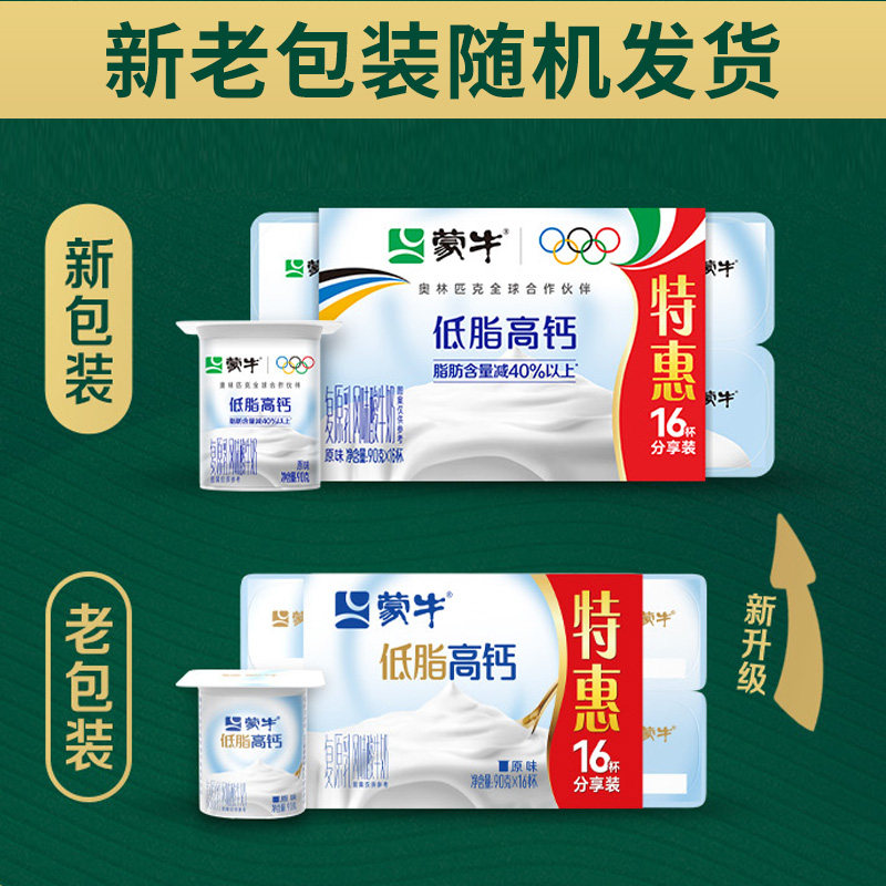 蒙牛低脂高钙风味酸奶8八连杯原味牛奶杯装90g*96杯营养早餐整箱