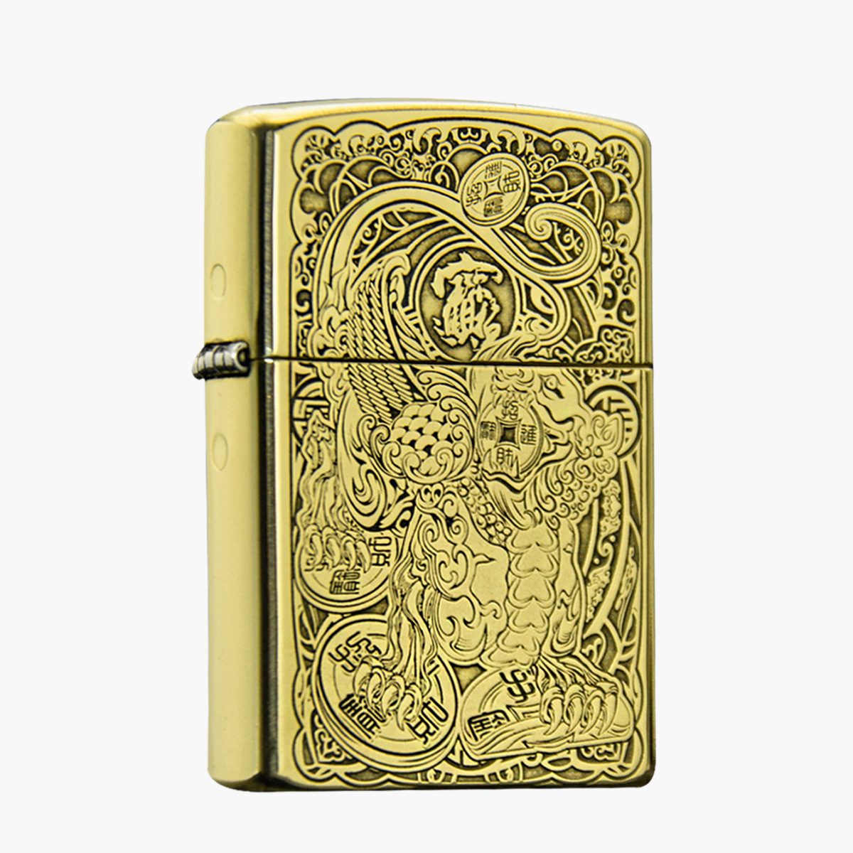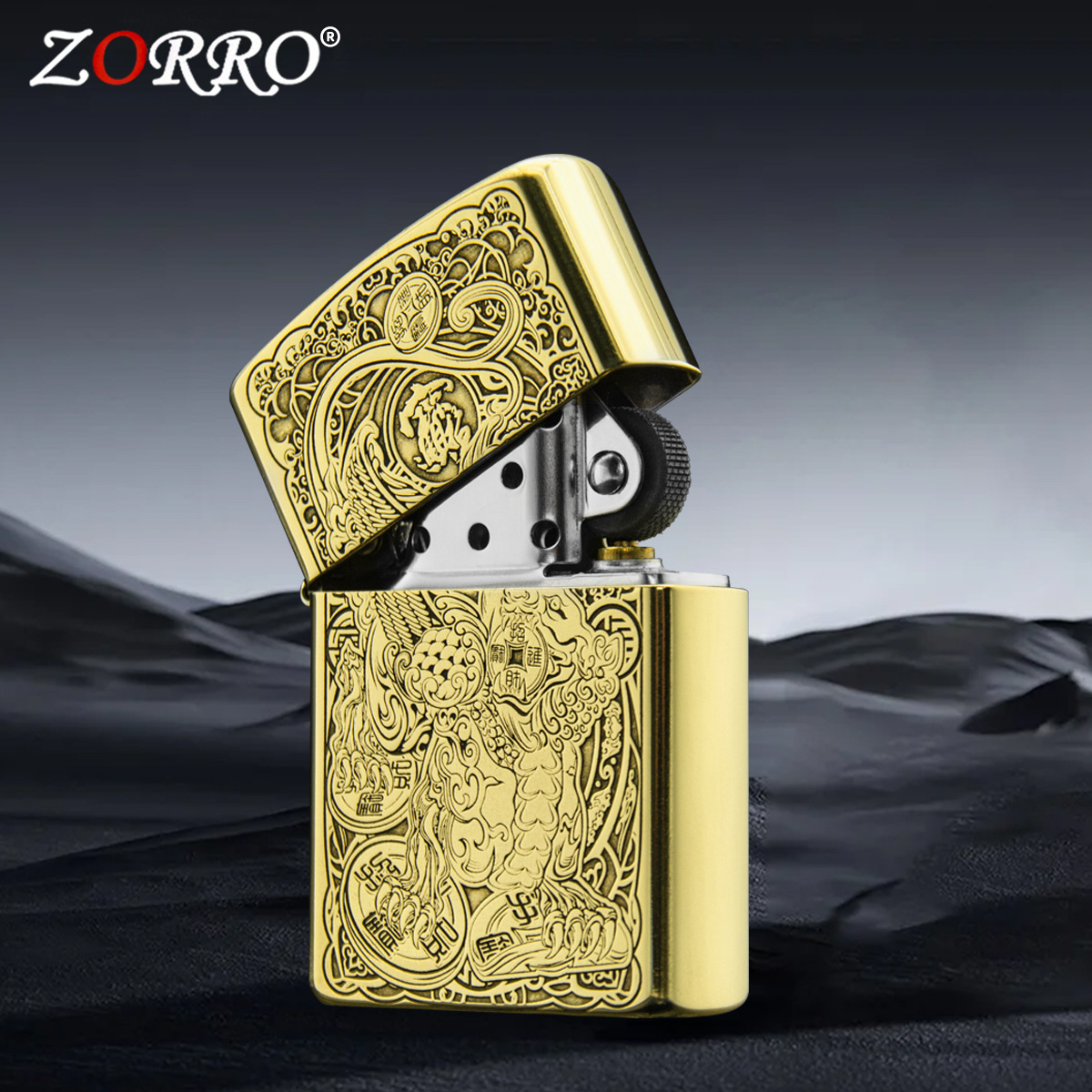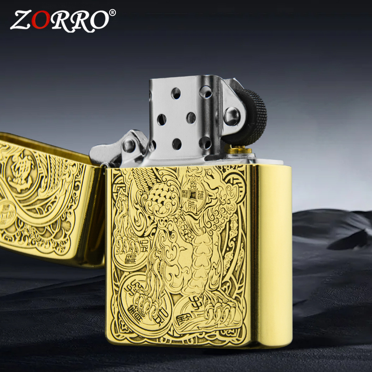 zorro佐罗正品砂轮煤油打火机铜壳子金色吞钱招财进宝貔貅神兽礼