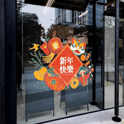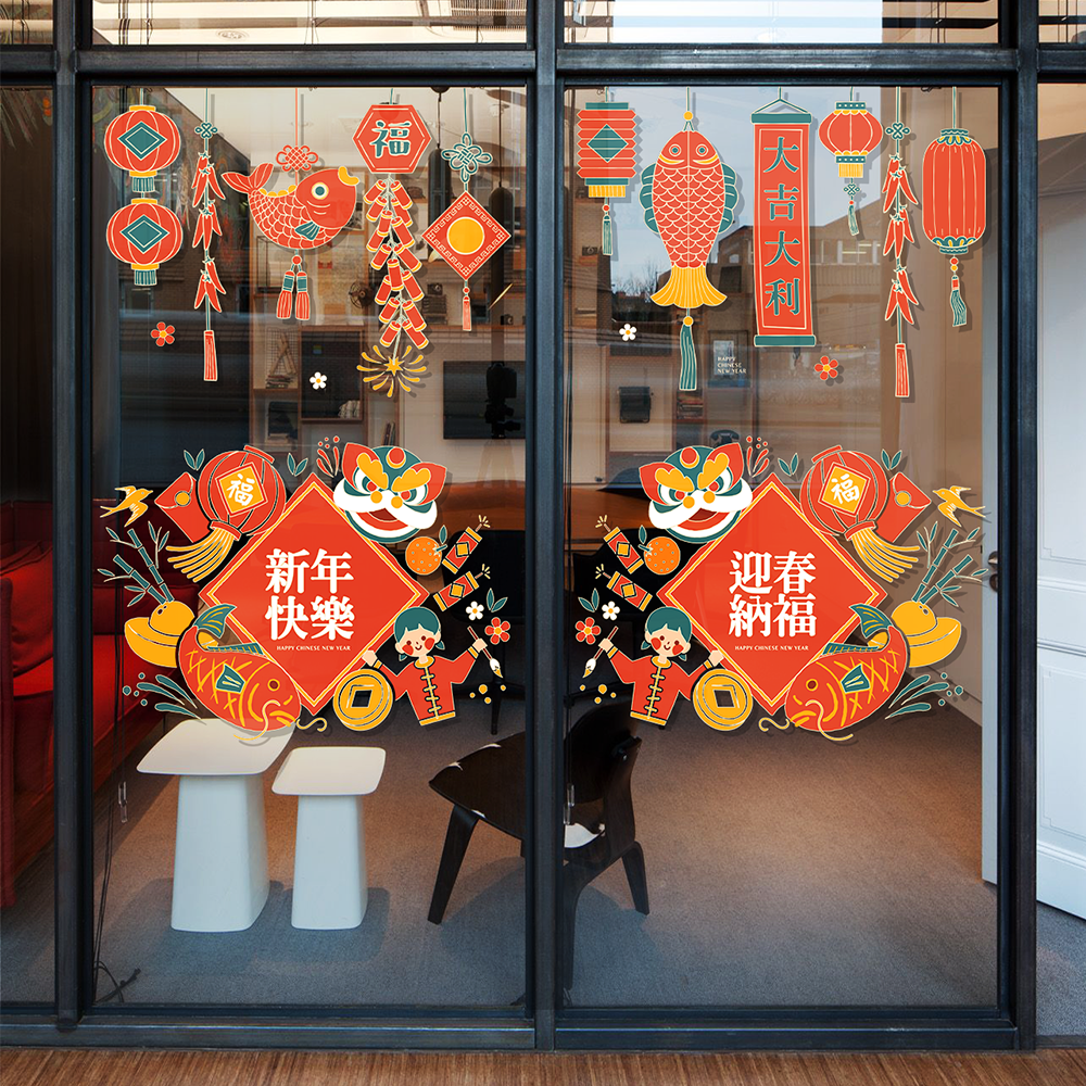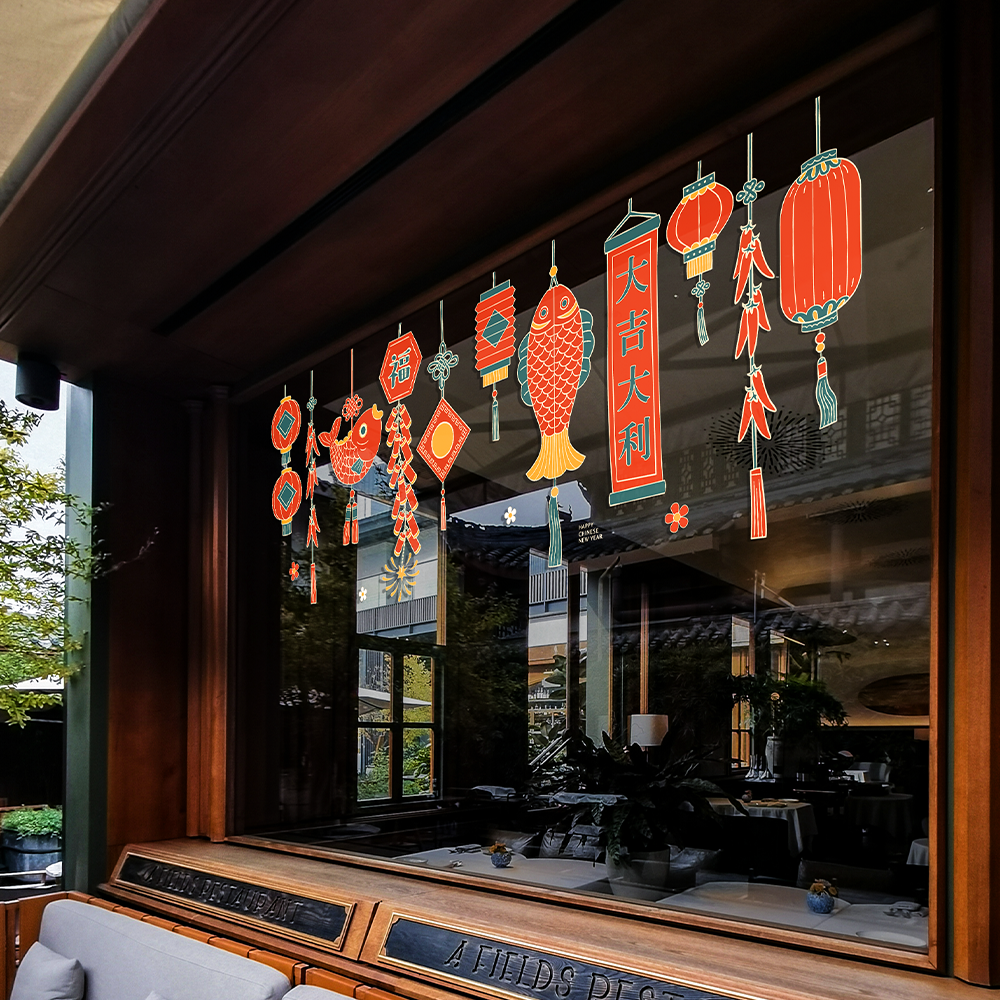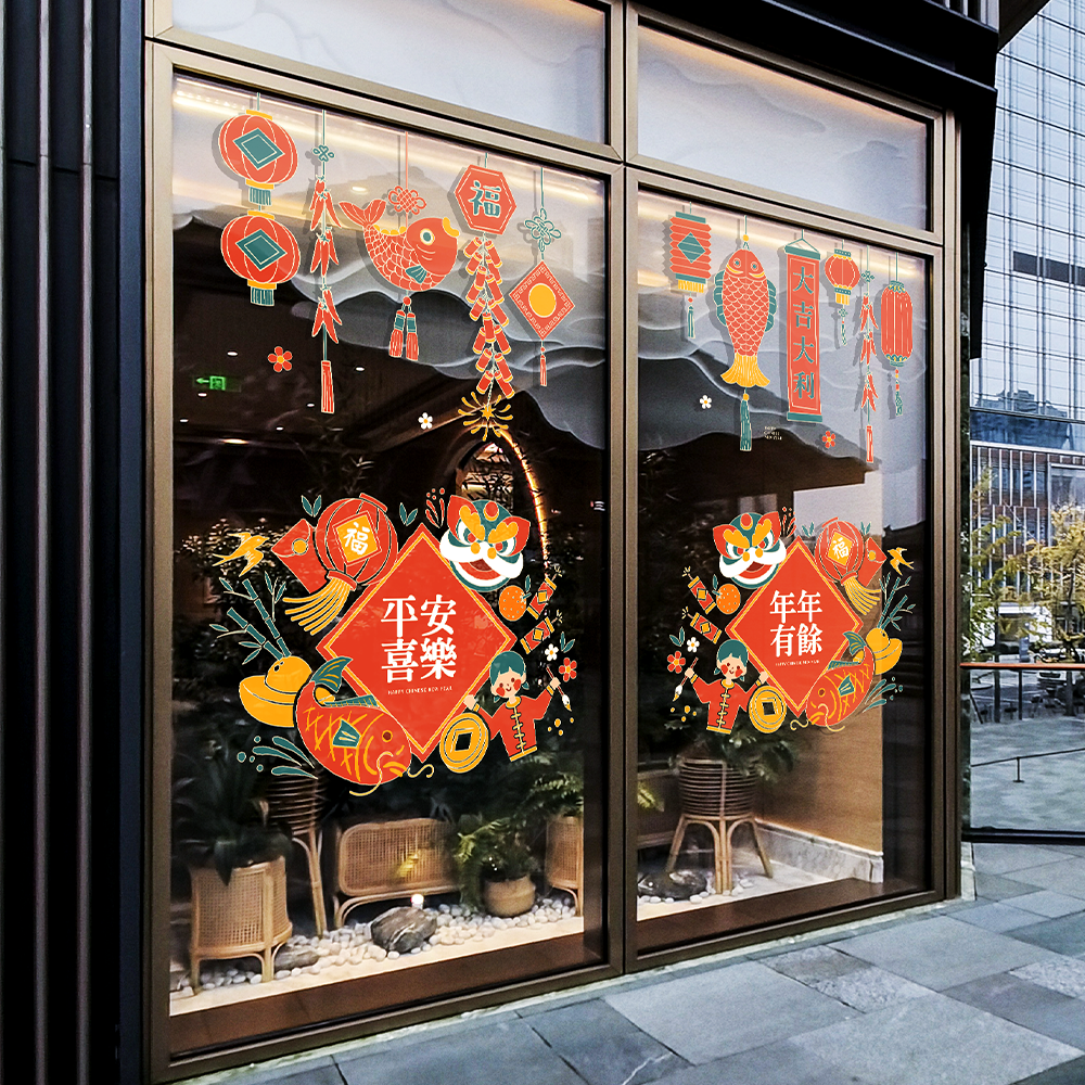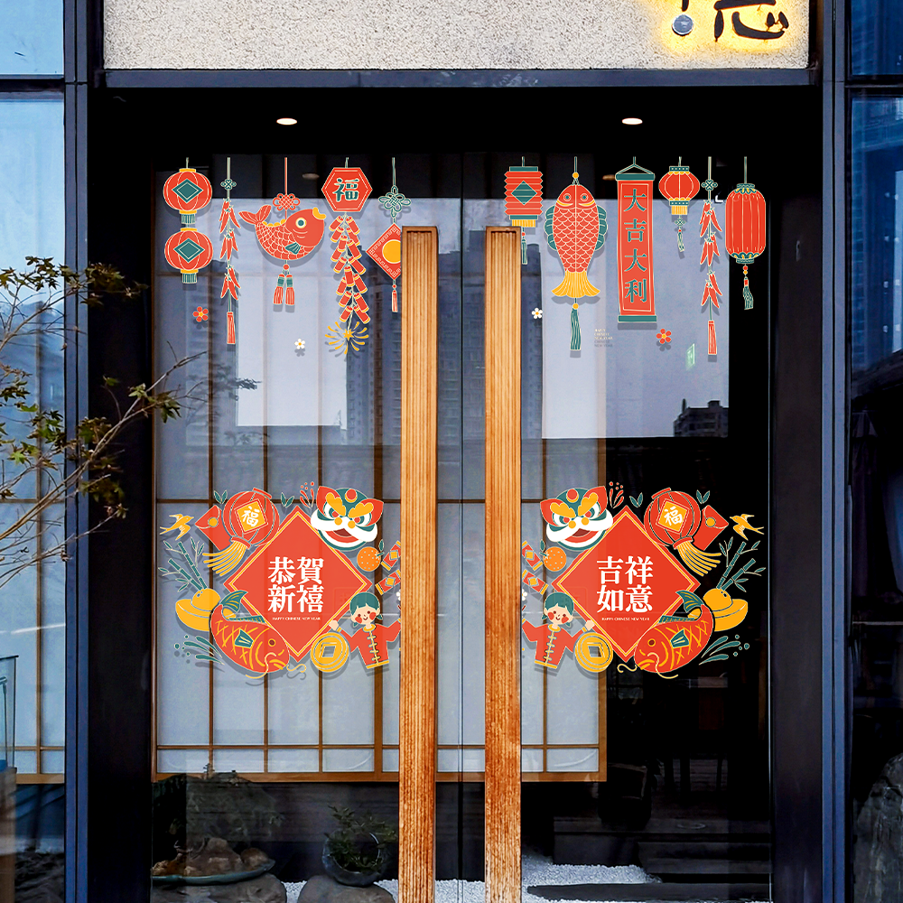 中式国风玻璃门贴纸马年节庆创意新年店铺橱窗装饰布置静电贴窗花