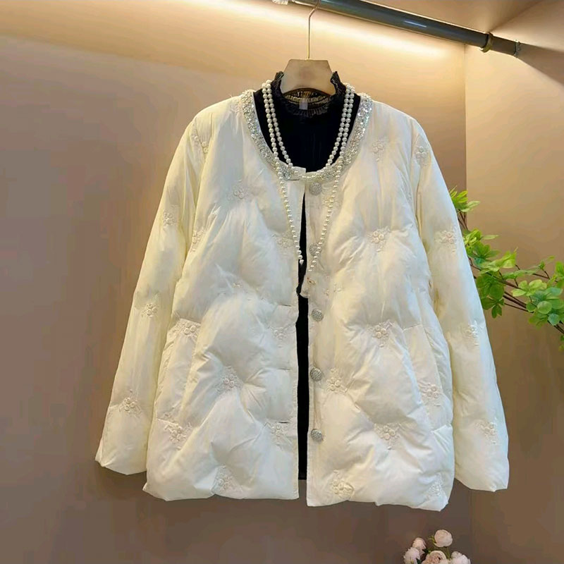 时尚镶钻气质V领菱格压花显瘦棉服大码女装外套上衣打底衫胖m冬季