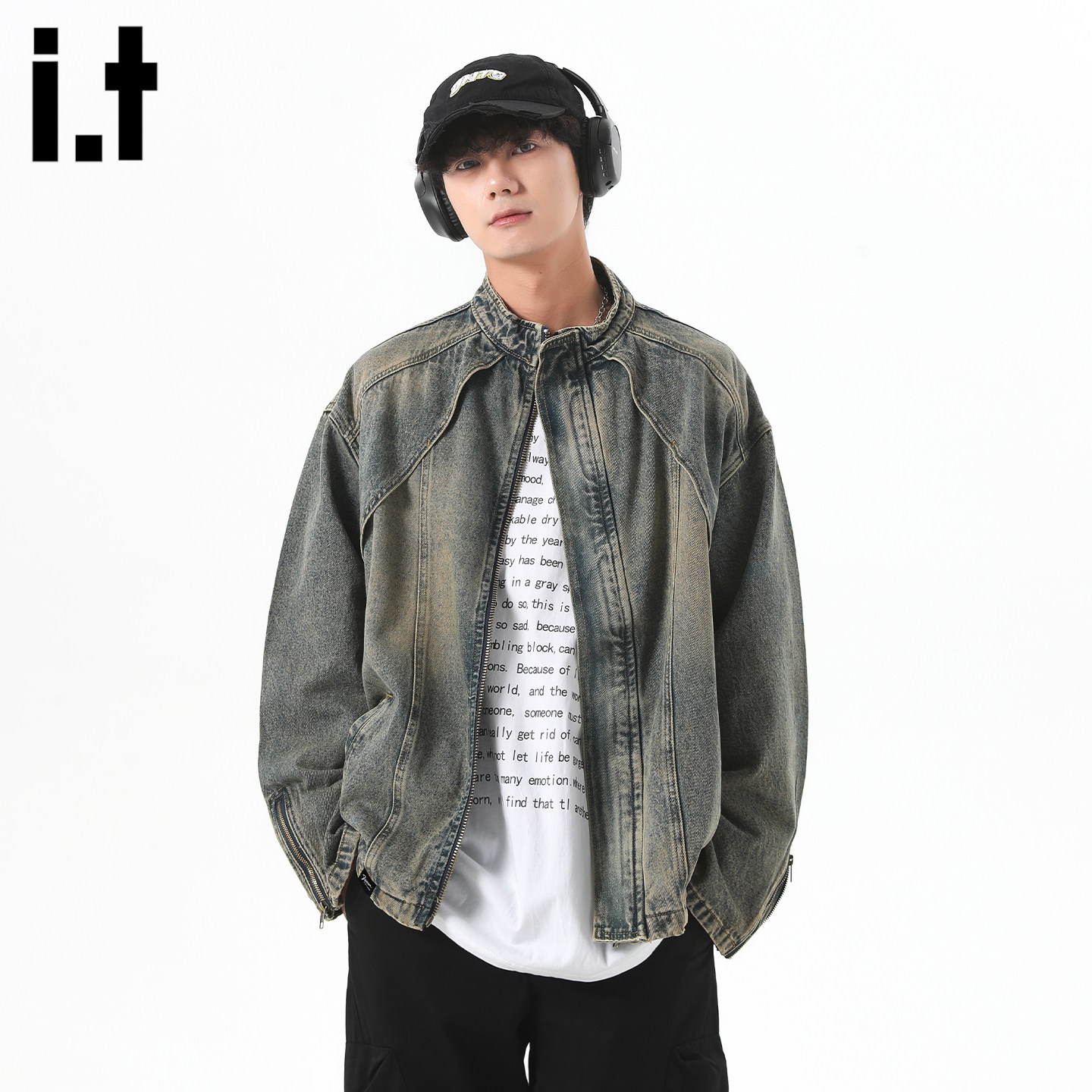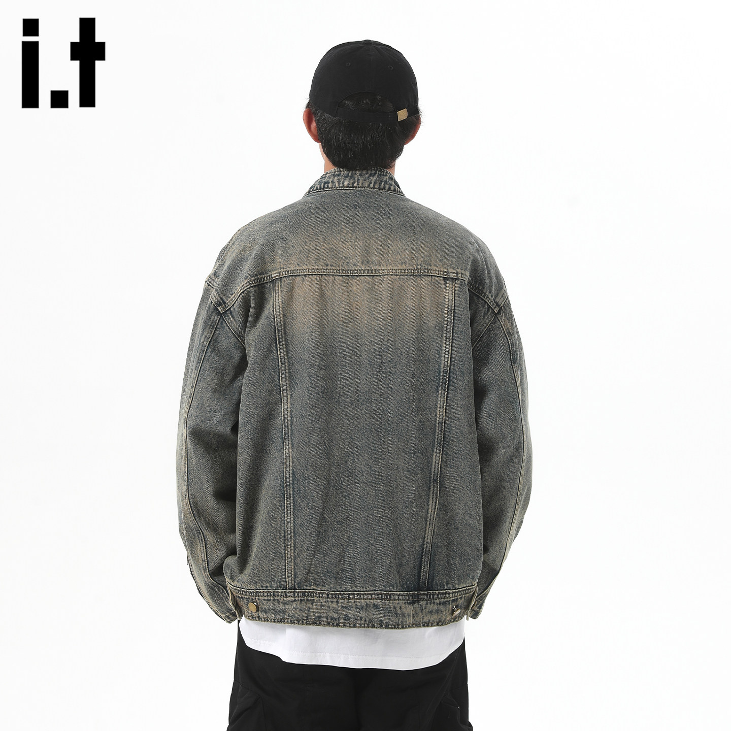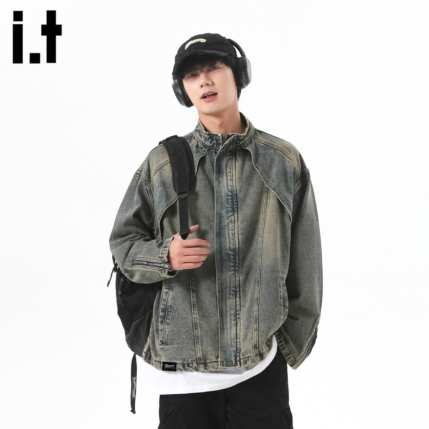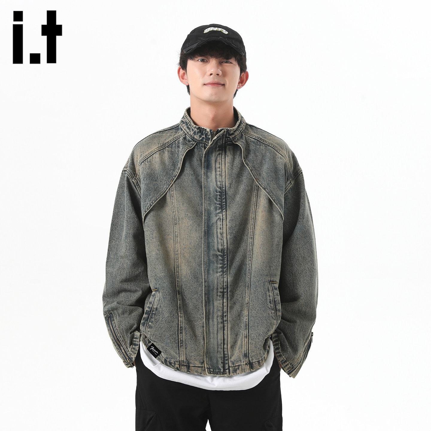 it:fivecm美式结构水洗牛仔外套男春季新款高街做旧宽松复古夹克