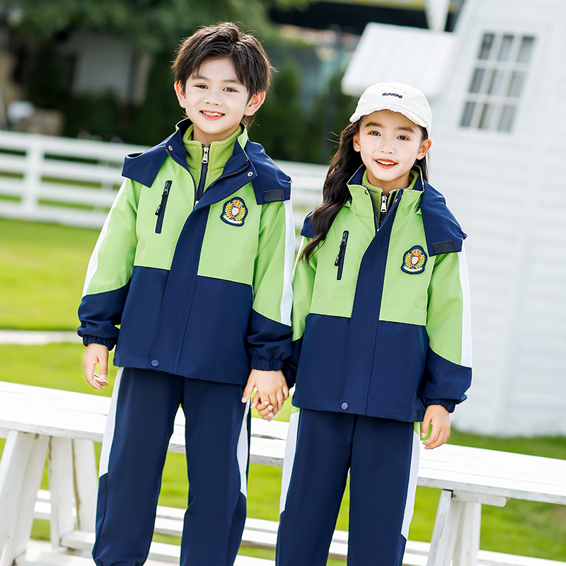一年级小学生校服绿色冲锋衣三件套冬季幼儿园园服春秋装儿童班服