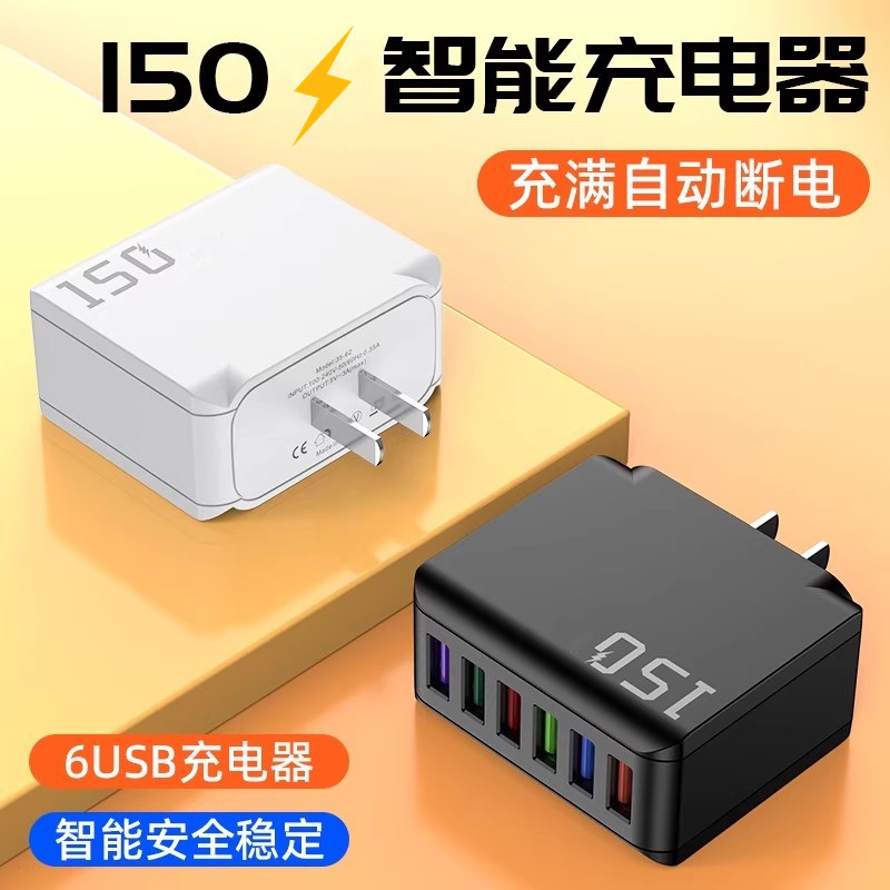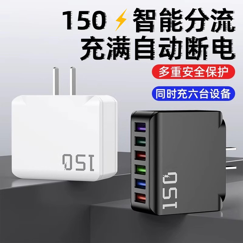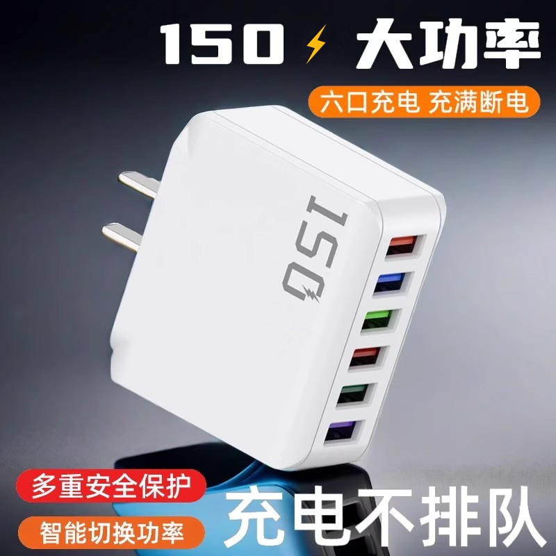 150充电头大功率多口usb插口智能断电快充头六口同时快充适用苹果安卓华为小米通用手机充电器套装5V3A15W
