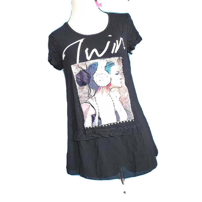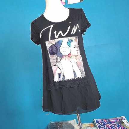 夏季2024韩版短袖中长款T恤裙女装休闲印花宽松显瘦百搭拼接雪纺