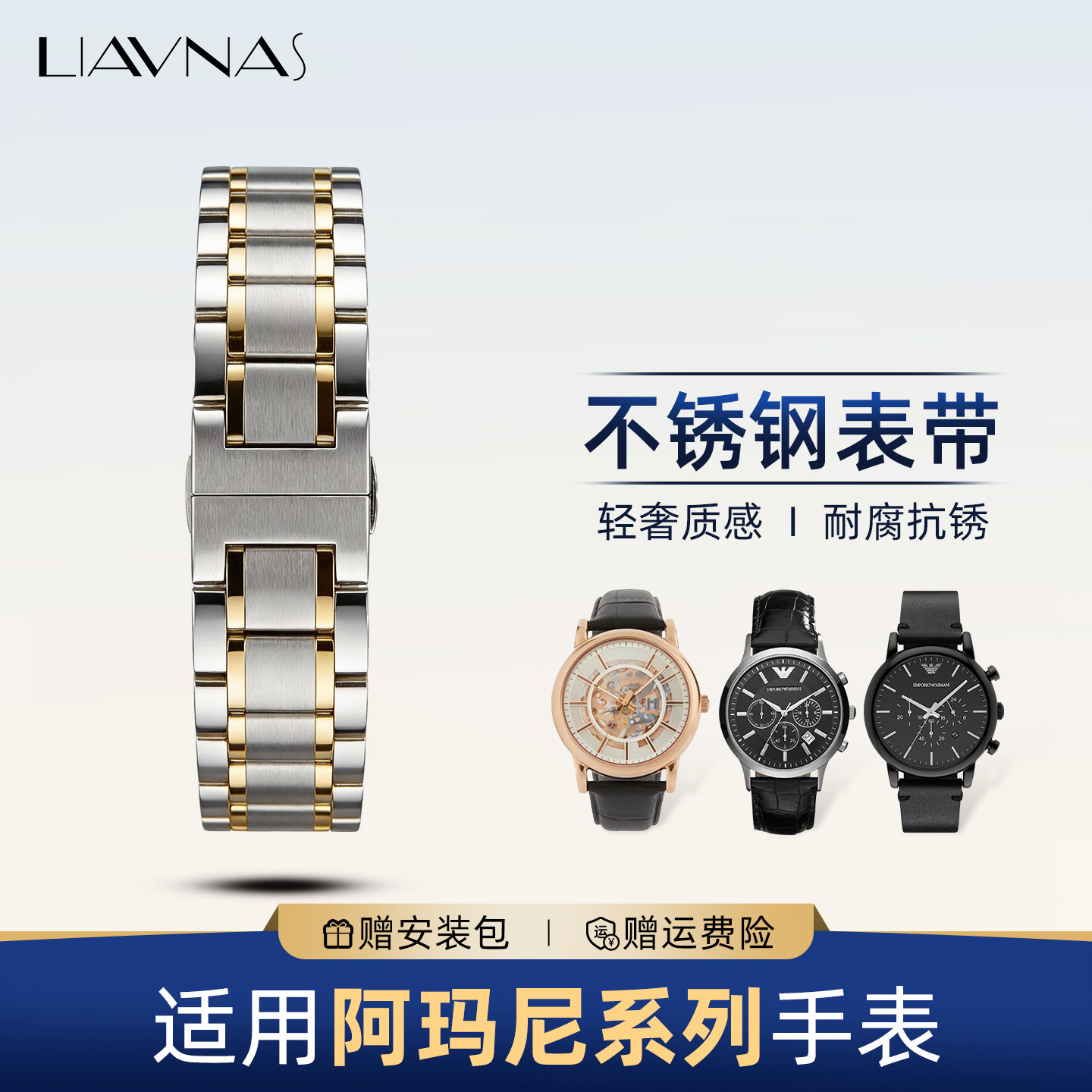 适配阿玛尼手表表带不锈钢男女