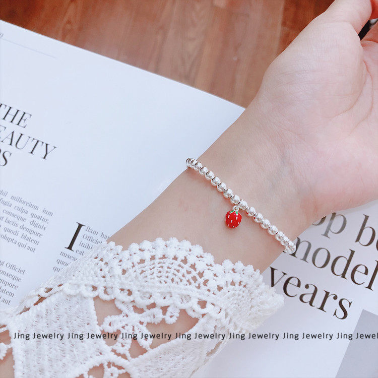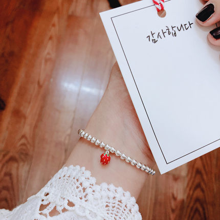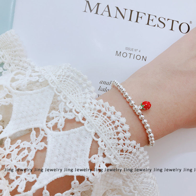 韩版草莓手链银珠925纯银韩版女