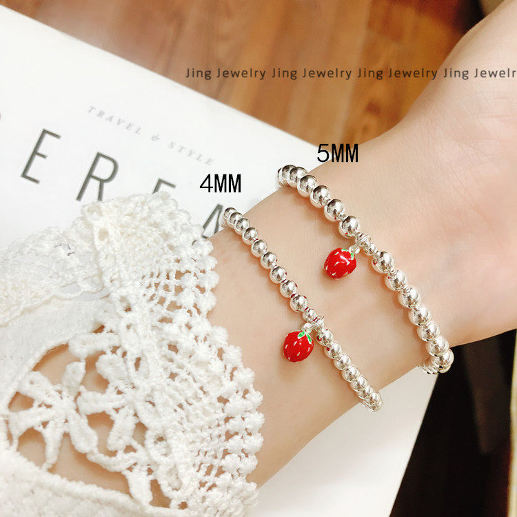 925纯银手链女韩版简约草莓银珠圆珠亲子手串儿童宝宝款