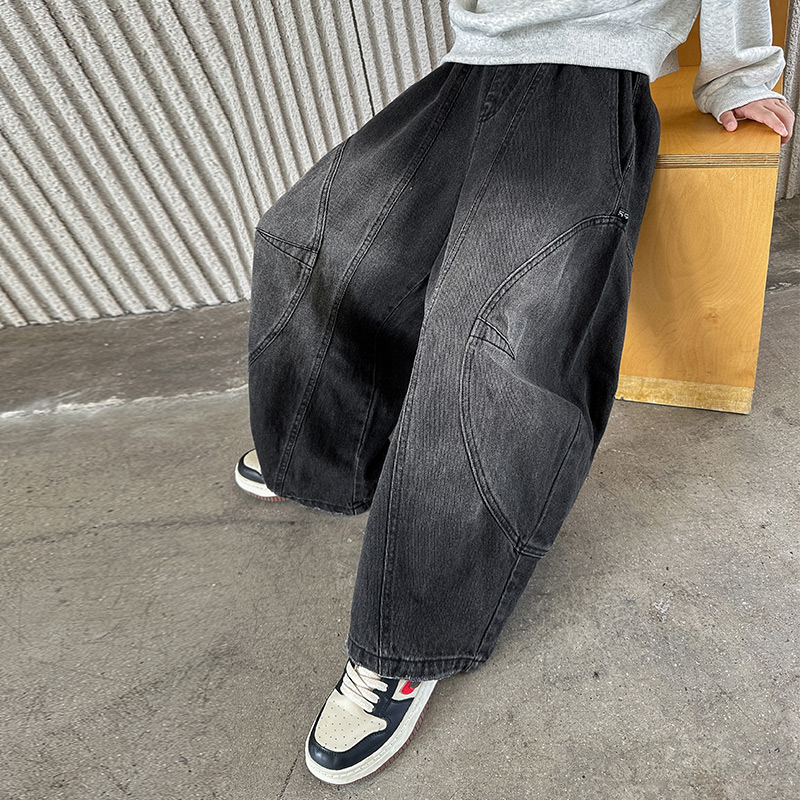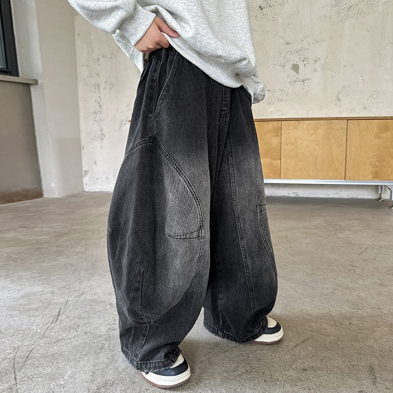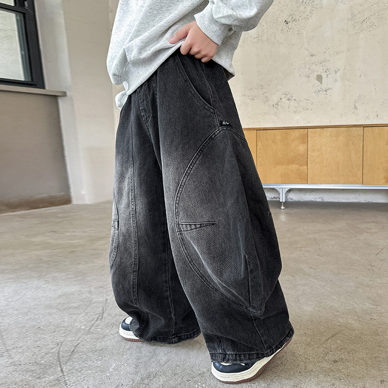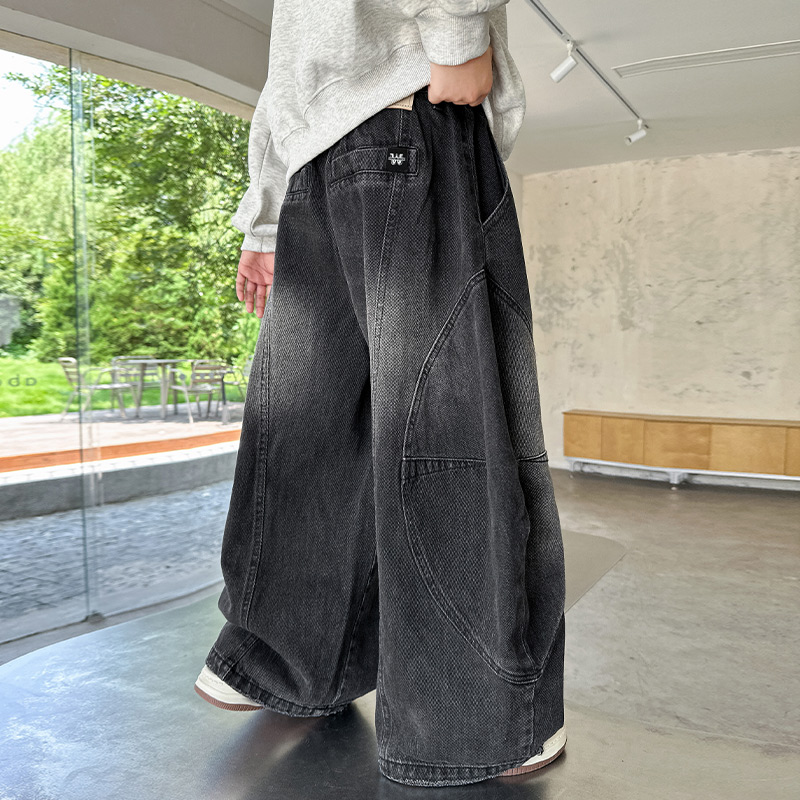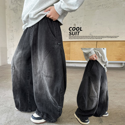 男童宽松裤子秋季儿童牛仔长裤2025新款春秋中大童帅气弯刀裤男孩