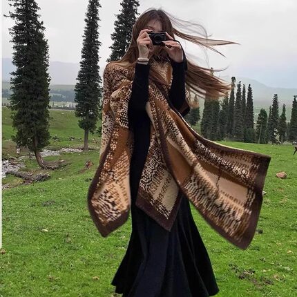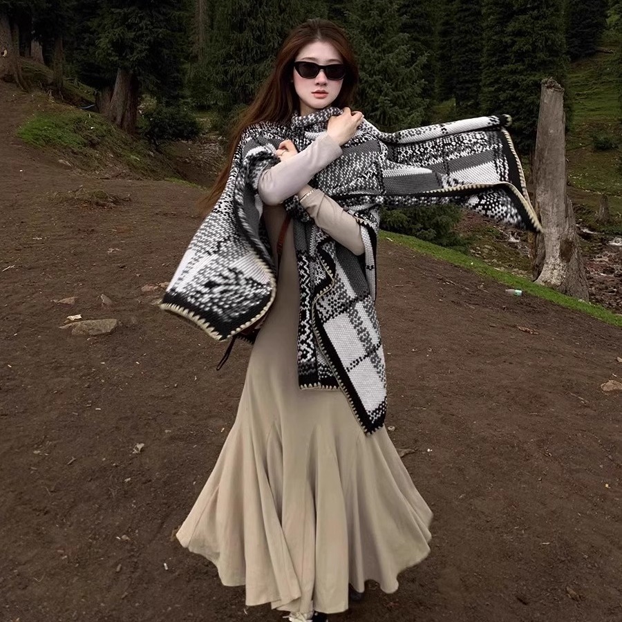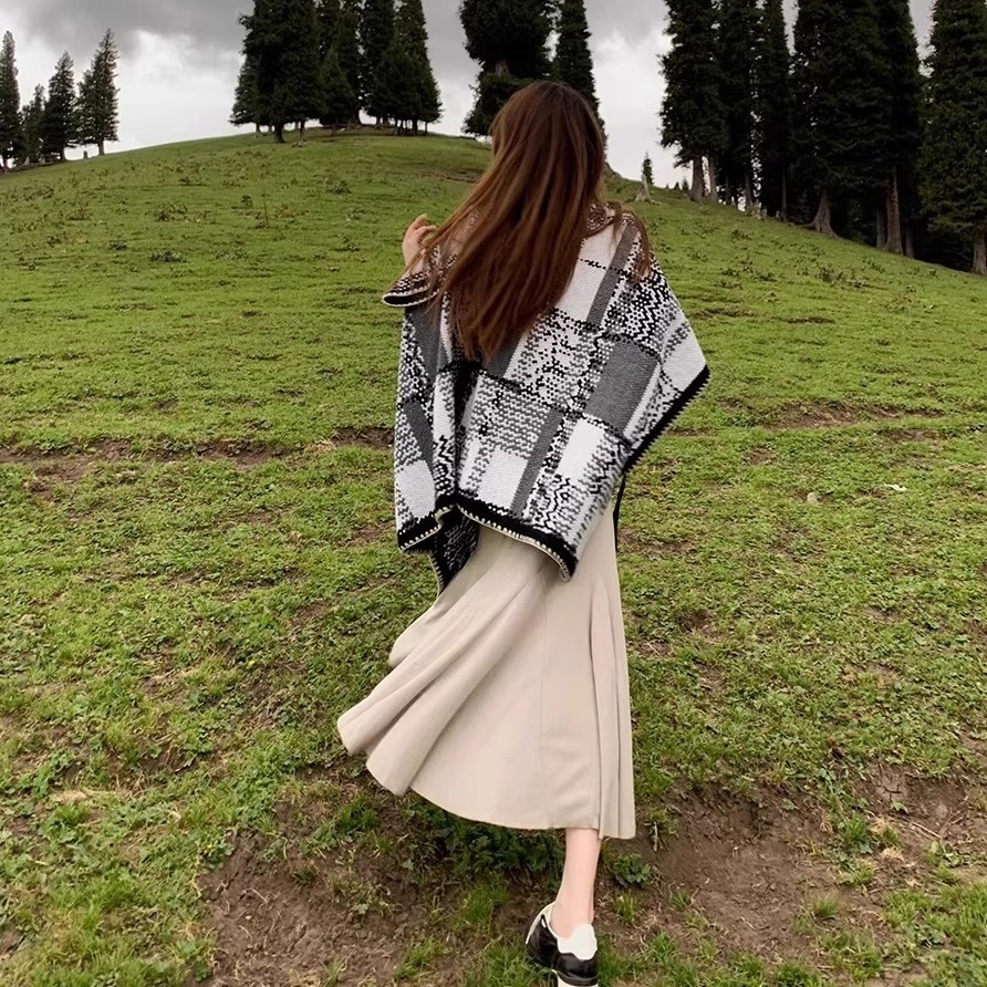 美拉德系格子披肩女秋冬季外搭民族风百搭仿羊绒保暖旅游围巾斗篷