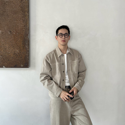 Nick Tian 春季极简纯色牛仔外套男新款翻领休闲风简约宽松夹克