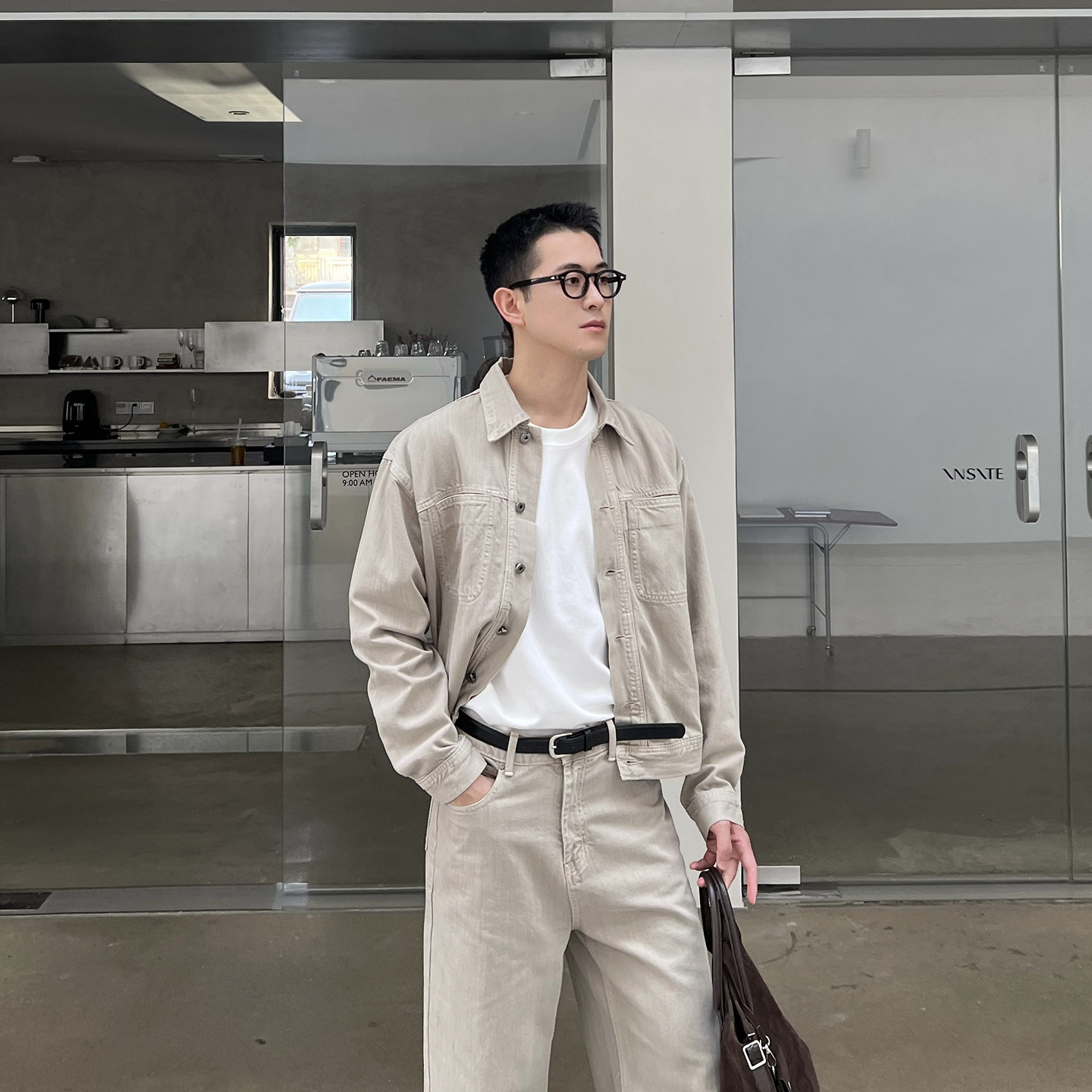 NickTian春季极简纯色牛仔外套